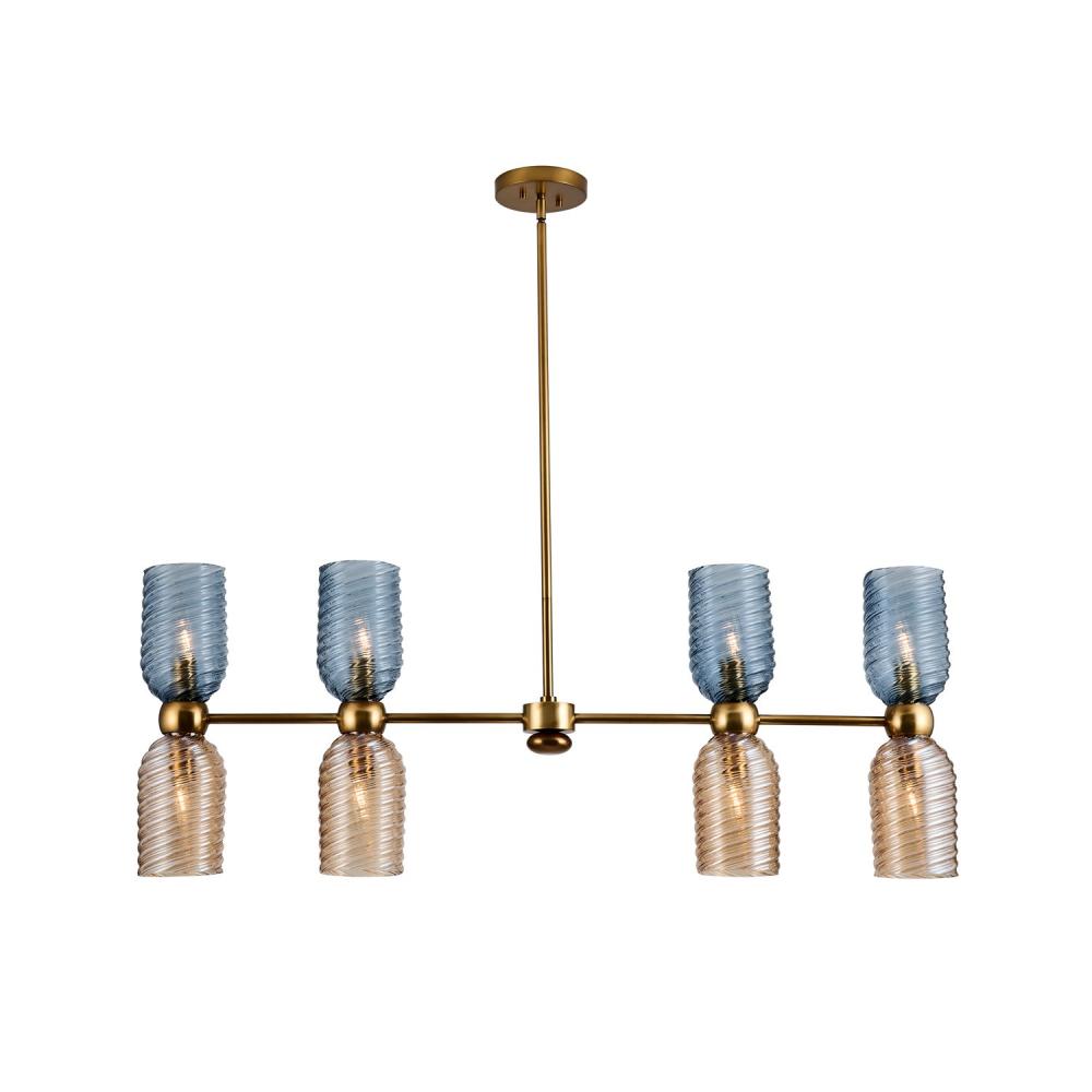 The perfect pairing of cool navy blue and a warm iridescent peach make a statement in color combinations. The glass shades feature a natural twisted texture on the surface. The rounded holder and pebble finial add soft accents in a classic Aged Gold finish.