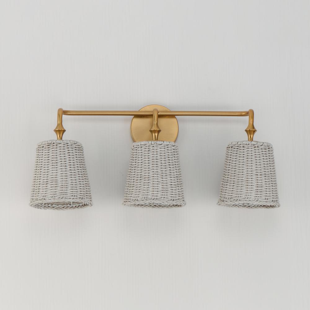 Featuring wicker shades made of synthetic rattan, this bath vanity lighting collection brings an elegant coastal flair to your space. Choose from a Natural wicker finish with a Dark Bronze frame accented by brushed golden highlights, or a Weathered White r