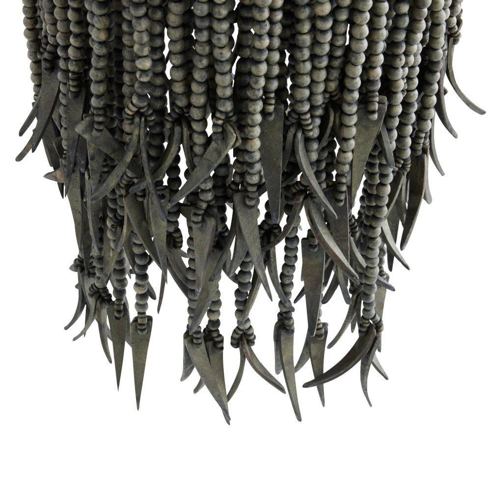 A natural take on a classic, the Baja pendant embodies the same balance and organic beauty of our iconic Baja chandelier. Crafted from wood and coconut beads in a Dark Gray Wash, the layered concentric construction is strung along an antique brass-plated iron frame. Though light and airy, it establishes a solid natural presence and can be hung in multiples. Finish will vary.