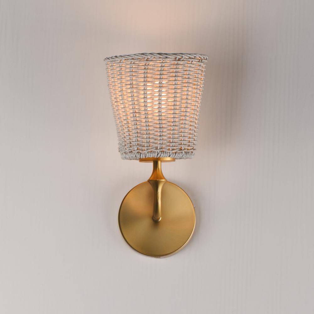 Featuring wicker shades made of synthetic rattan, this bath vanity lighting collection brings an elegant coastal flair to your space. Choose from a Natural wicker finish with a Dark Bronze frame accented by brushed golden highlights, or a Weathered White r