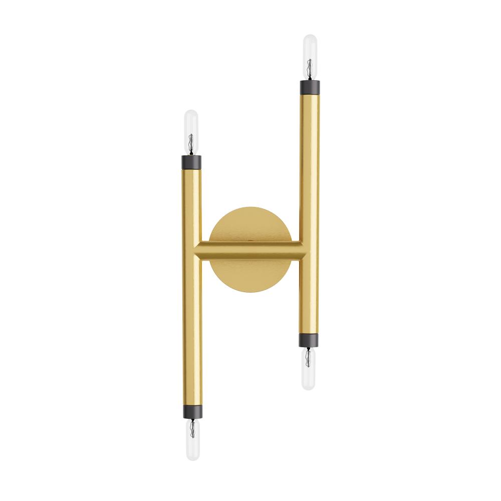 The staggered bars of our sleek Ballard add an industrial charm offset with a two-tone finish. Crafted of antique brass-plated iron with bronze accents, its intriguing form recalls the linear spacing between bricks. This clever tubular design can also be mounted as a sconce. Damp-rated, although limited covered outdoor conditions may affect finish.