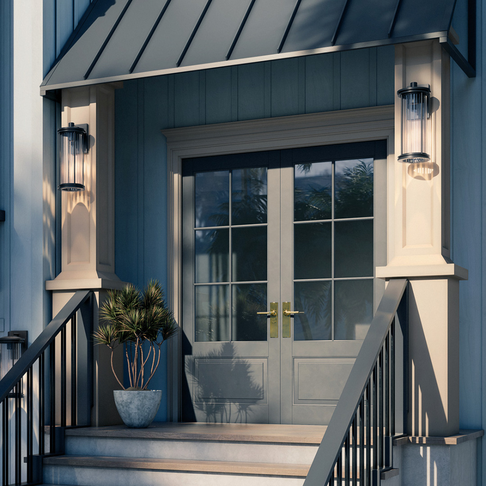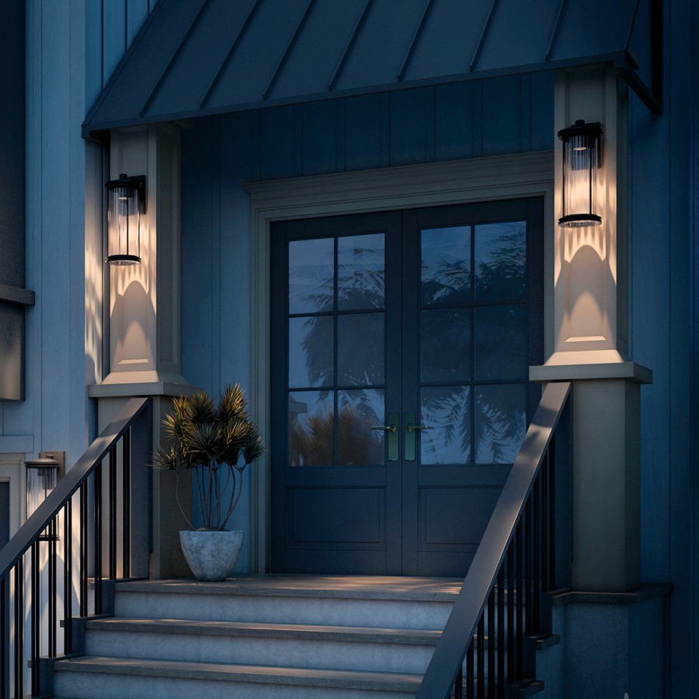 Timeless charm meets modern durability in the Barras outdoor collection. Inspired by the elegance of the early electric era, Barras brings a hint of industrial aesthetic to your outdoor space. Its clear ribbed glass creates a striking light play, adding depth and character to exteriors. As a DarkSky Approved fixture it helps reduce light pollution, protecting natural ecosystems, human health, and the night sky. Classic design, enduring performance—Barras is where heritage meets innovation.