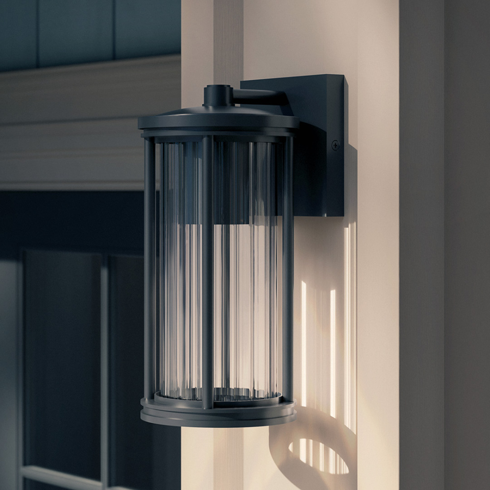 Timeless charm meets modern durability in the Barras outdoor collection. Inspired by the elegance of the early electric era, Barras brings a hint of industrial aesthetic to your outdoor space. Its clear ribbed glass creates a striking light play, adding depth and character to exteriors. As a DarkSky Approved fixture it helps reduce light pollution, protecting natural ecosystems, human health, and the night sky. Classic design, enduring performance—Barras is where heritage meets innovation.