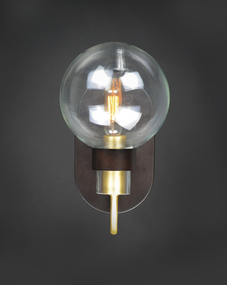 This classic Mid Century Modern design features a frame finished in a combination of Bronze and Satin Brass. The arms terminate at rings that support Clear heavy blown glass shades which were prevalent in this era.