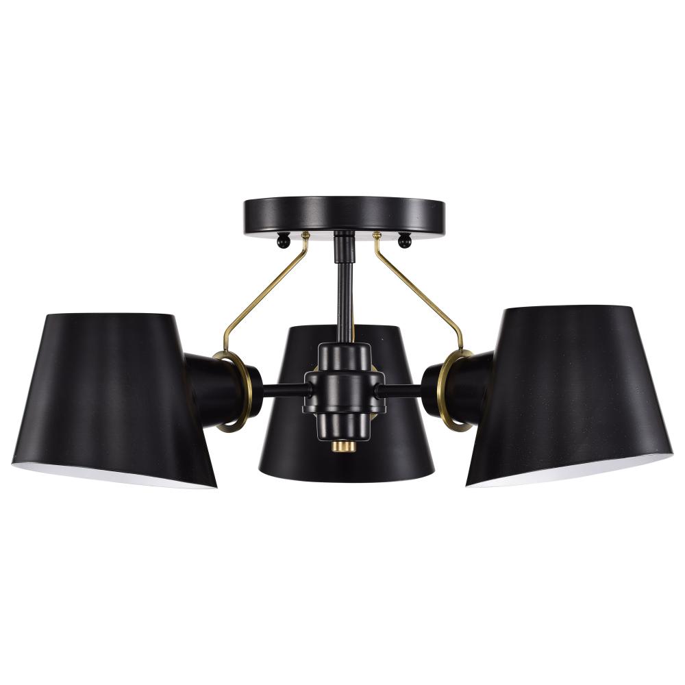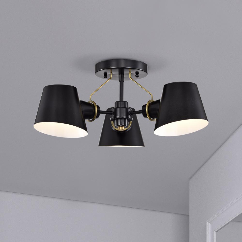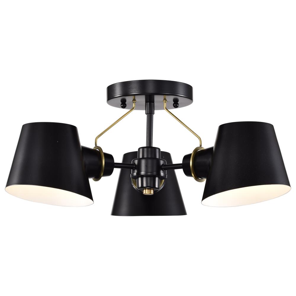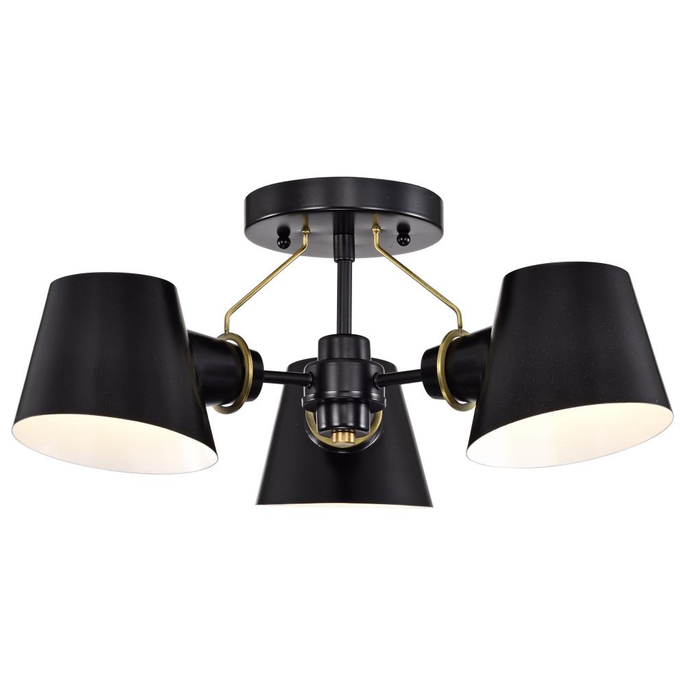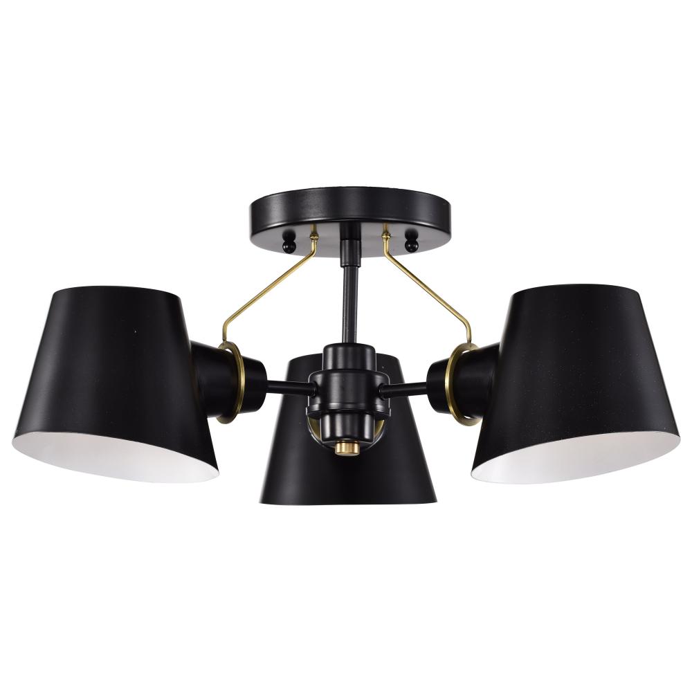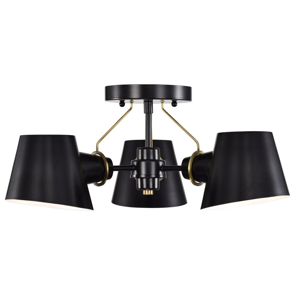 Baxter; 3 Light Semi-Flush; Black with Burnished Brass