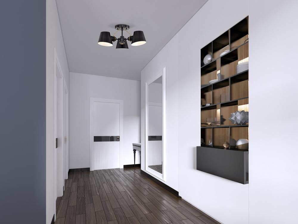The Baxter 60-7384 semi-flush mount does not disappoint, with its modern design and impressionable style. The black shades are finely cut at an angle and feature a white interior to maximize the light output. The lustrous burnished brass stems attach from