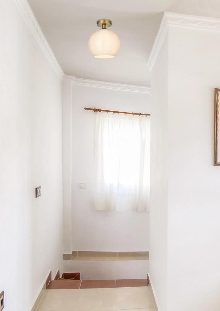 Features a frosted white glass shade, delivering a soft, diffused light for a warm, inviting atmosphere.