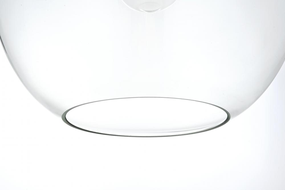 Features a clear glass shade, offering bright, unobstructed light and a clean, modern look.