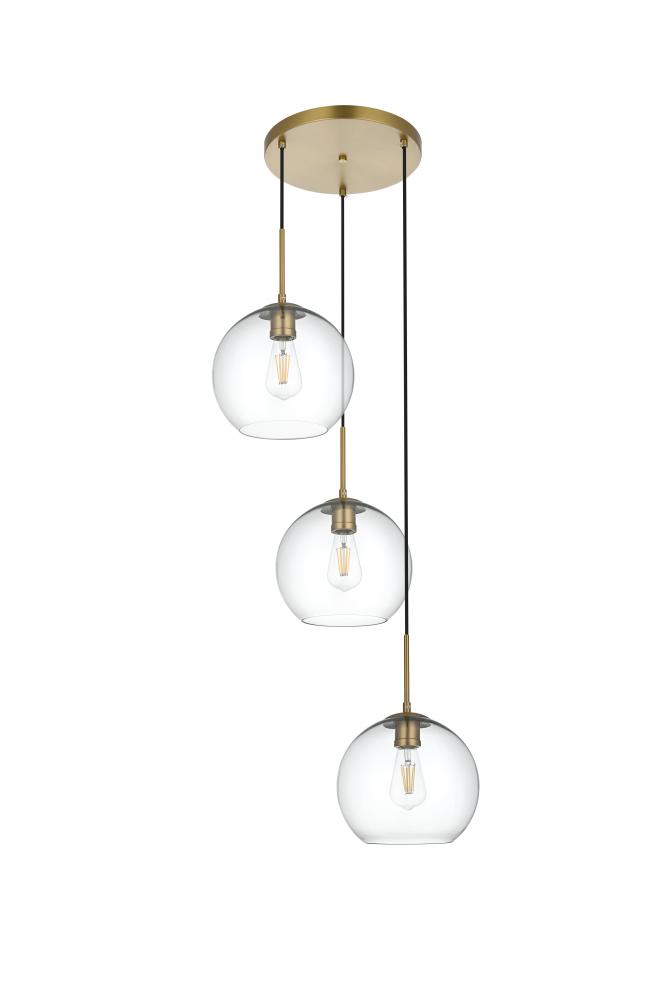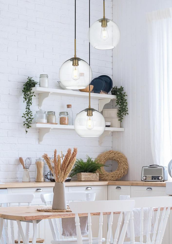 The Baxter hanging pendant light combines refined style with a practical design, adding cosmopolitan sophistication to any space—be it an entryway, hallway, bathroom, kitchen, or closet. The sleek iron frame, complete with a disk-shaped canopy, elegantly supports three clear spherical glass shade that stays open at the center, making bulb replacement effortless. Designed for those who love the look of big-city elegance, the Baxter pendant makes sophisticated living easy.