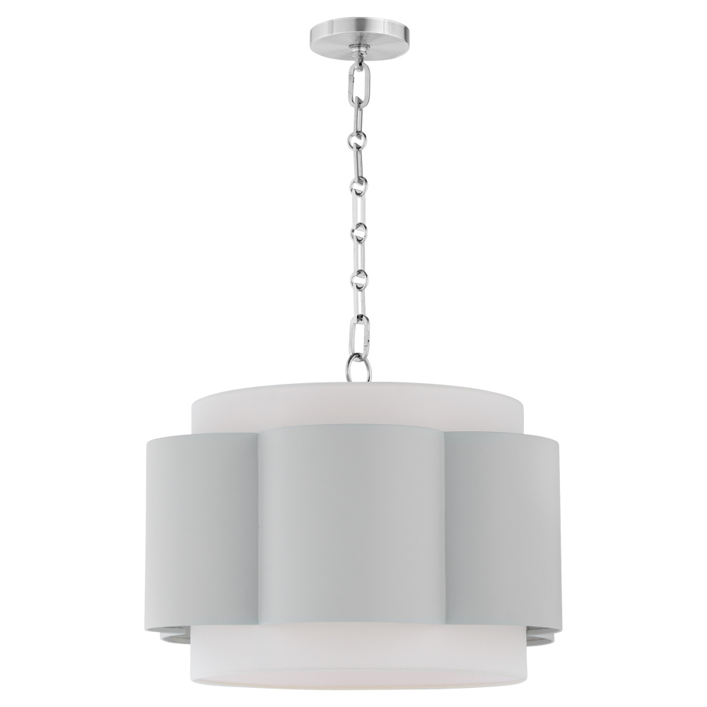 The Belinder series expertly captures the essence of Tamara Day's signature "laid-back luxe" style. Featuring delicate ribbing, white linen fabric drum shades, and a floral-inspired collar, the Belinder collection adds a modern touch of luxury to any interior space. An extra layer of care and detail is added through a rectangle link chain. This collection's pendant designs come in matte black, brushed brass, or Brittney blue finishes. Include the Belinder 4 light pendant in your next home design.