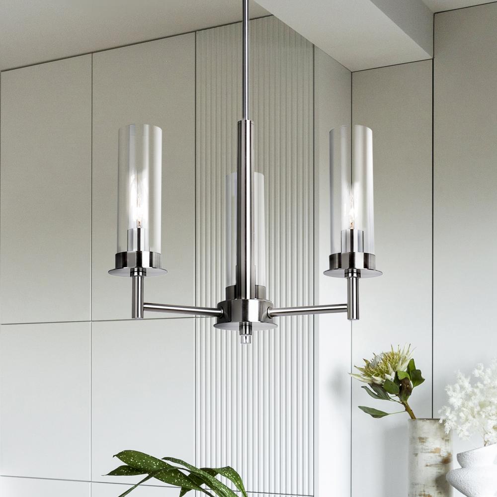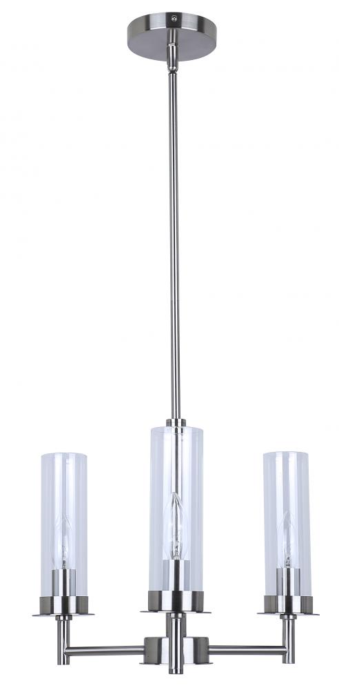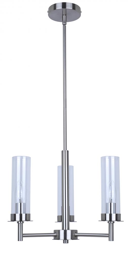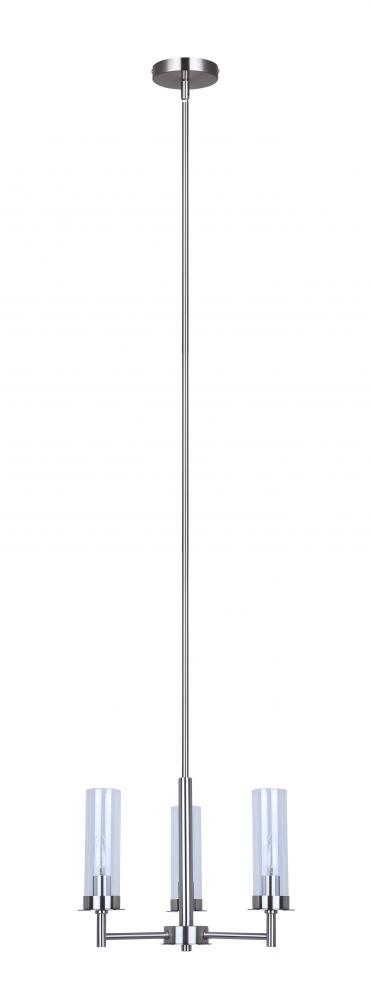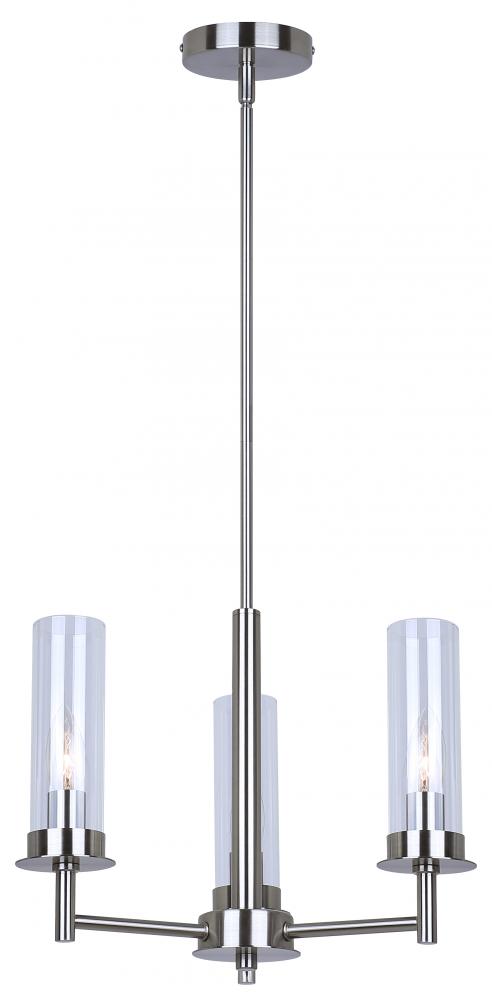 BENSON, ICH1205A03BN, 3 Lt Rod Chandelier, Clear Glass, 60W Type C, 16inch W x 14.625 - 62.625inch H