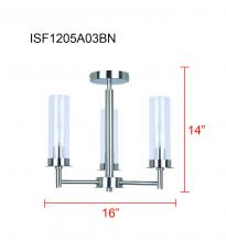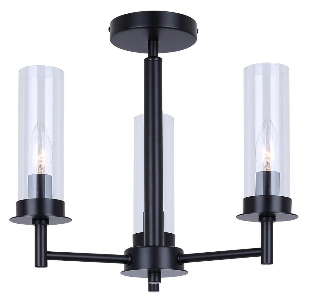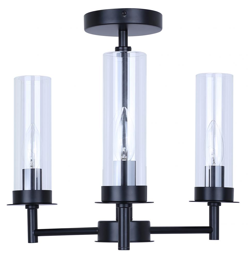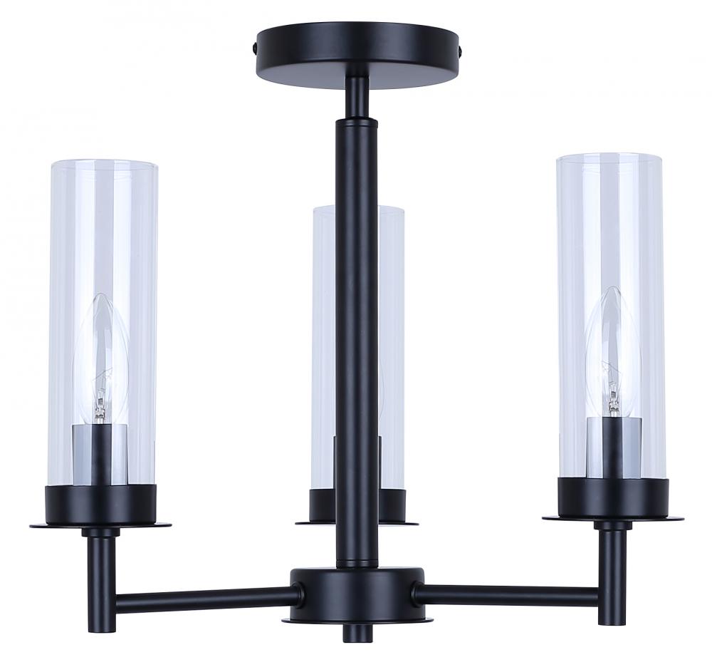 BENSON, ISF1205A03BK, MBK Color, 3 Lt Semi-Flush, Clear Glass, 60W Type C, 16inch W x 14inch H