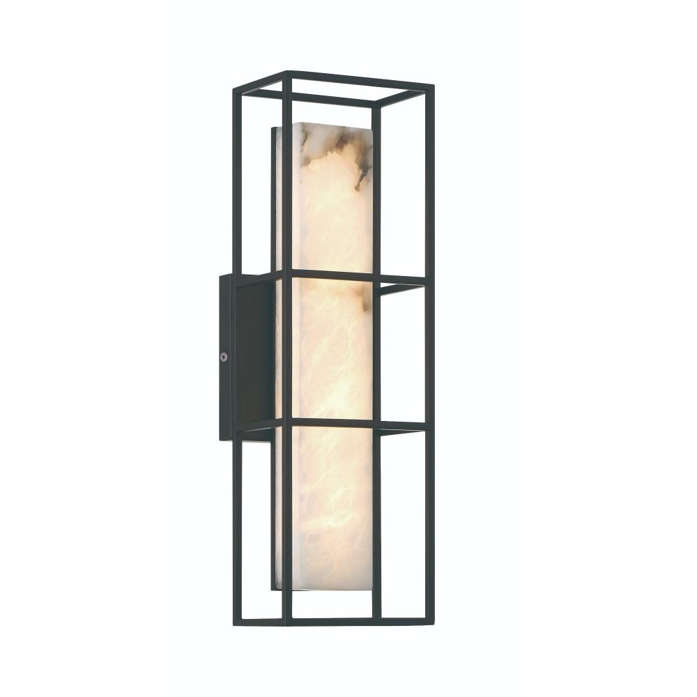 Organic and industrial have been combined. The softness of alabaster panels surrounded by the strength of a metal frame represent the yin and yang of a home…the warmth of the people safely ensconced inside the structural soundness of building, illuminated by blakely wall mounted lighting.