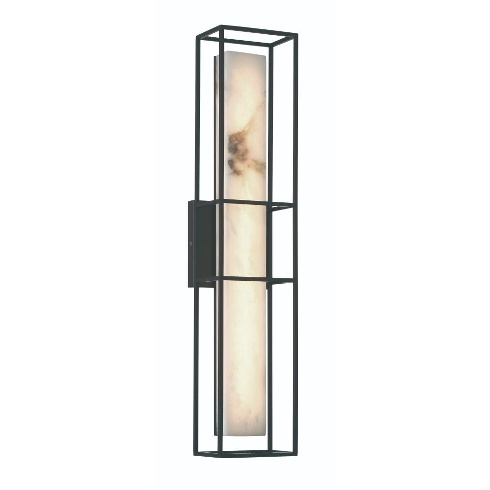 Organic and industrial have been combined. The softness of alabaster panels surrounded by the strength of a metal frame represent the yin and yang of a home…the warmth of the people safely ensconced inside the structural soundness of building, illuminated by blakely wall mounted lighting.