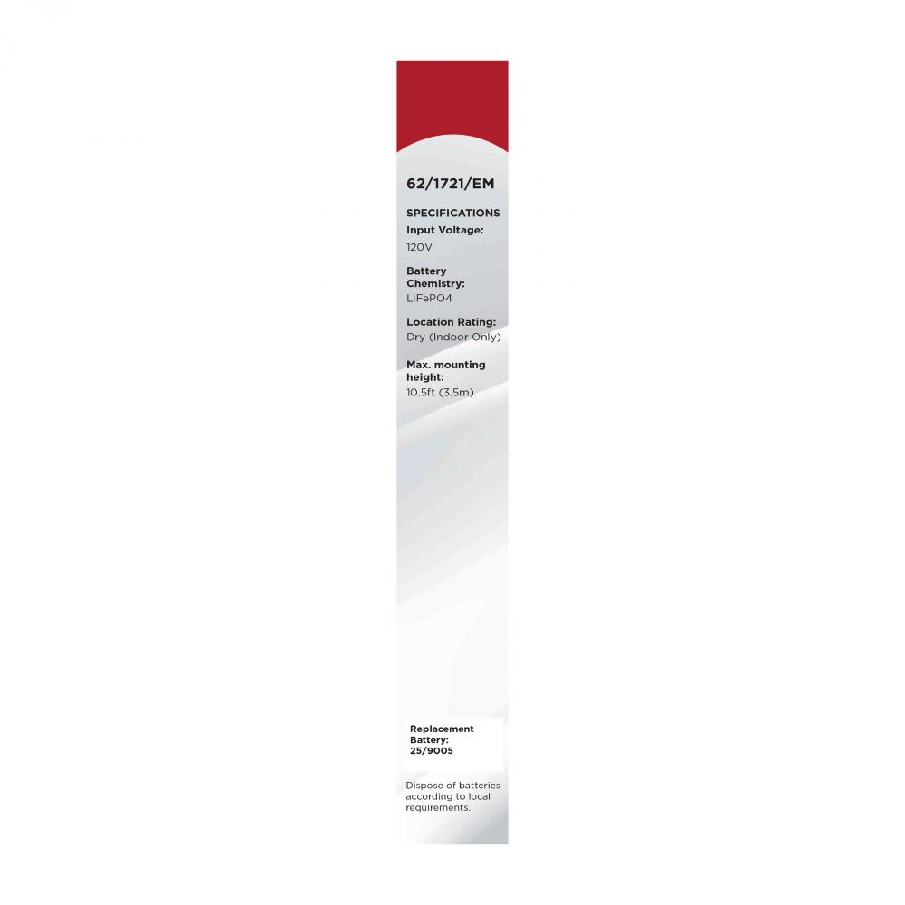 90 Minute Battery Runtime; 24 Hour Recharge Time; Fixture not included; Battery should be changed approximately every 2 years