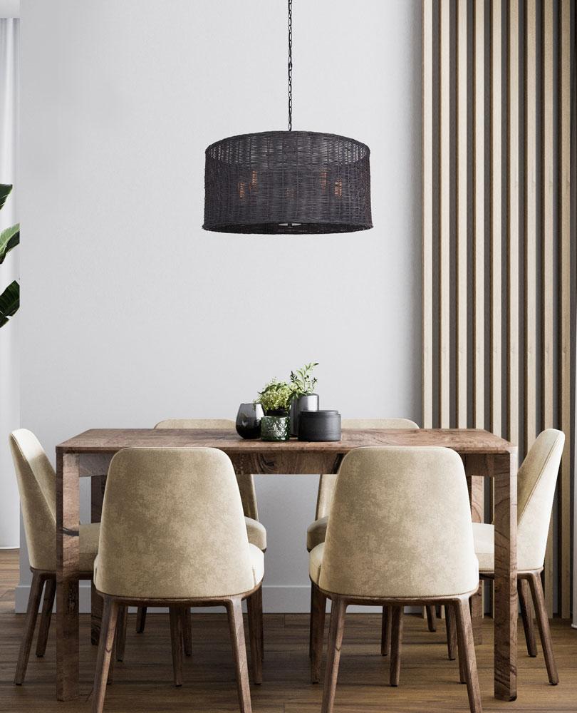 One of our most stunning drum-inspired fixtures, the Bonham mixes the soft, natural element of handwoven rattan with always-classic-black. The versatile shape and color allows Bonham to suit both relaxed and refined interiors. Boho meets mod with this pendant that will surely add texture, style and a unique rhythm to any room.