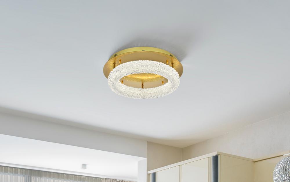 Elevate your space with this enchanting 18 inch LED Flush Mount, featuring a captivating round crystal-adorned design for a touch of sophistication.