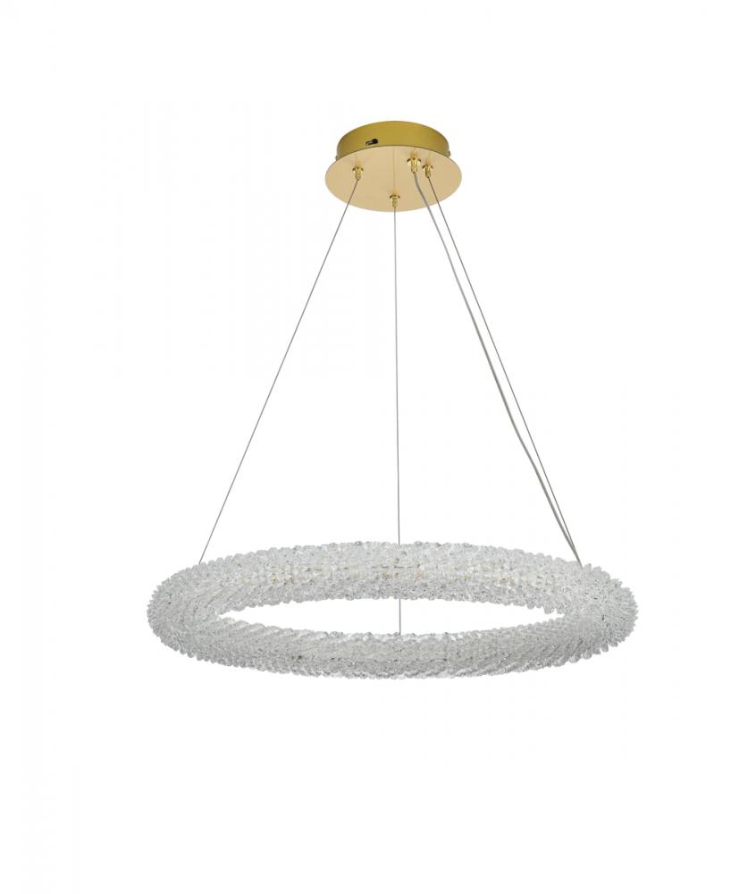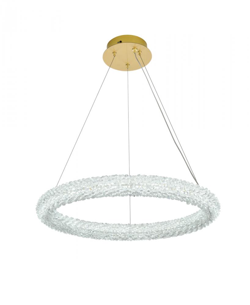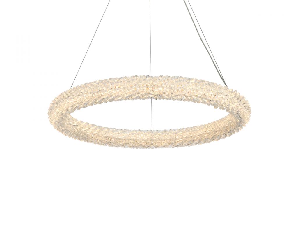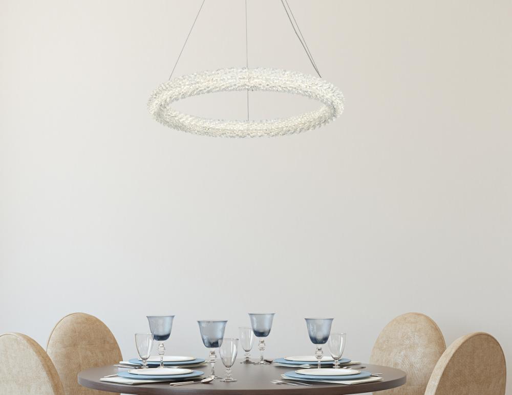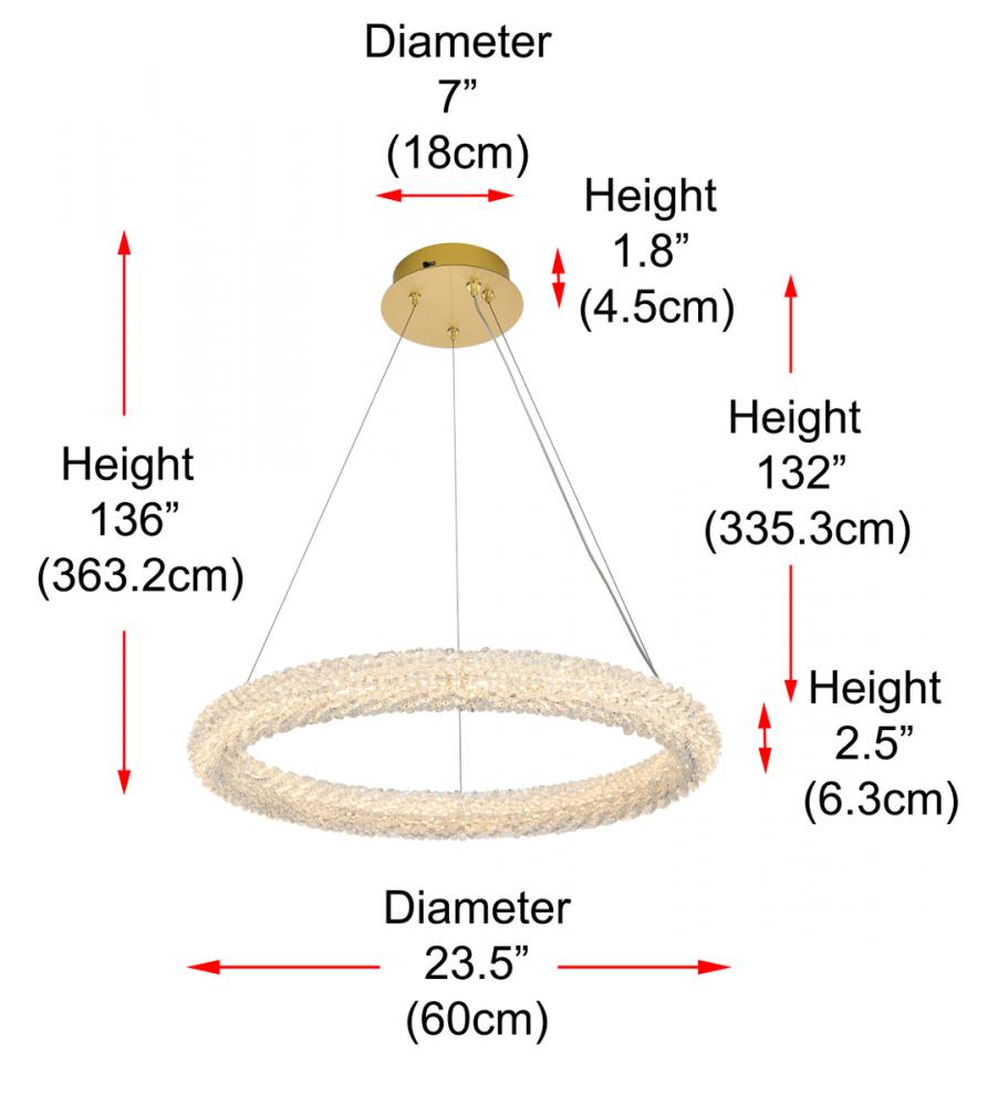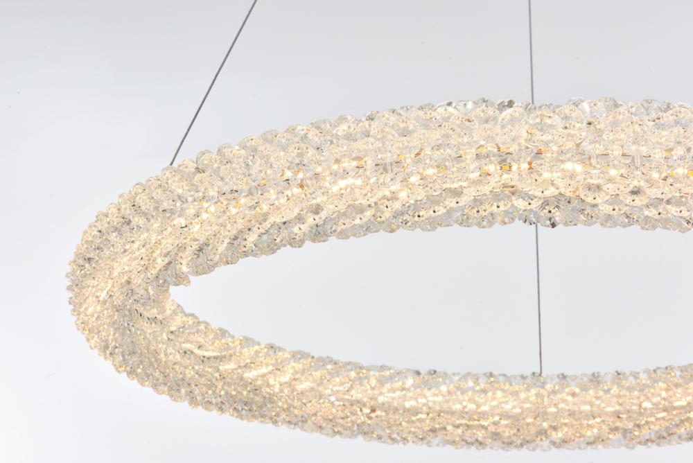 Elevate your surroundings with the chic design of this 24 inch LED Chandelier, showcasing a captivating round crystal-adorned chandelier and an elegant 7-inch canopy for a touch of sophistication.