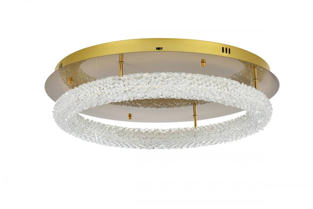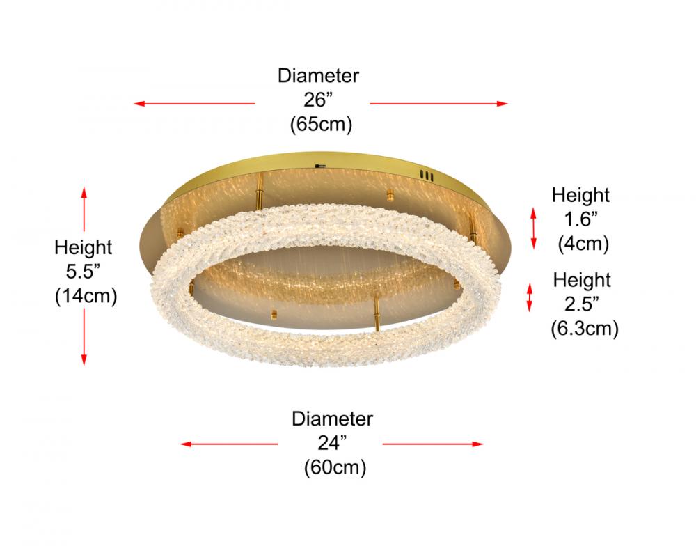 Elevate your space with this enchanting 26 inch LED Flush Mount, featuring a captivating round crystal-adorned design for a touch of sophistication.