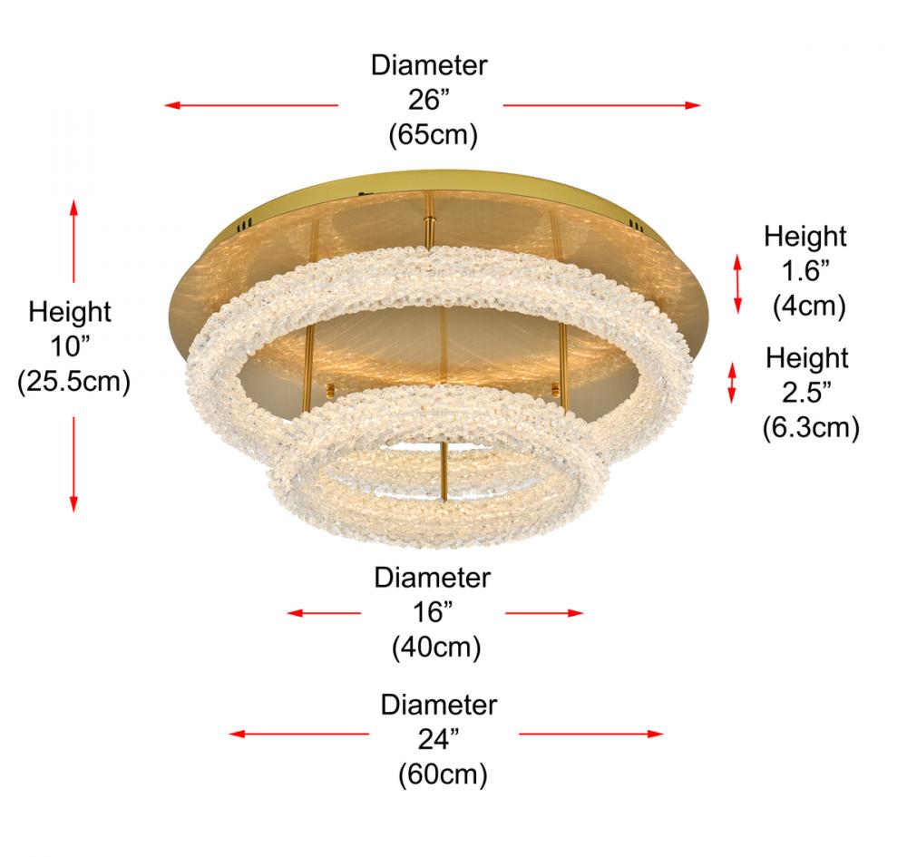 Illuminate your space with this enchanting 26 inch LED Tiered Flush Mount, showcasing two captivating rings adorned with crystals for a touch of sophistication.