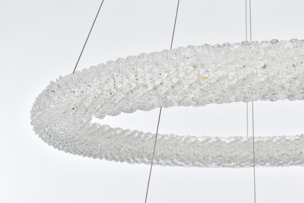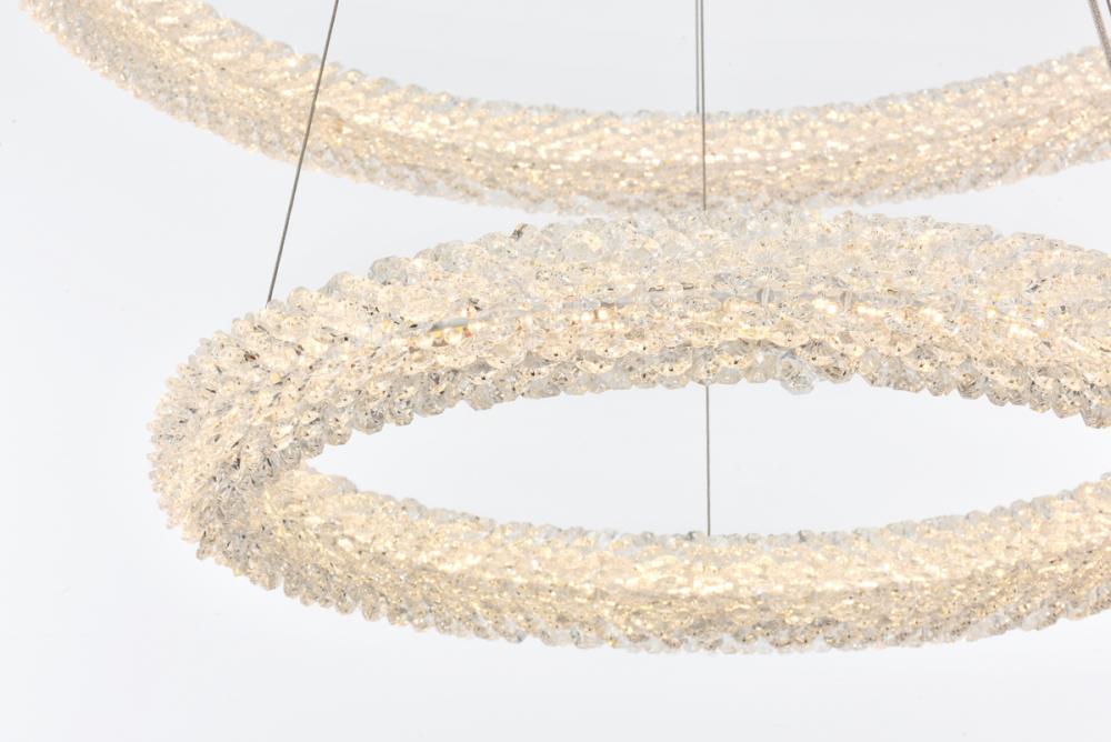 Illuminate your space with this enchanting 28 inch LED Tiered Chandelier, showcasing two captivating rings adorned with crystals for a touch of sophistication.