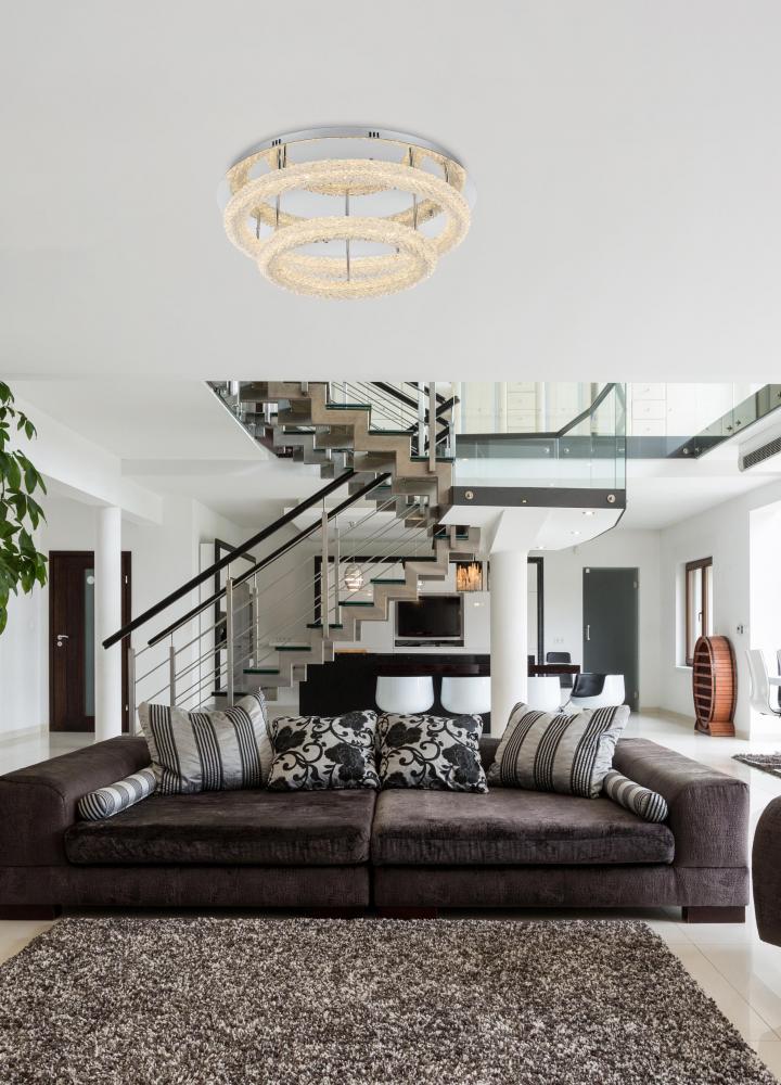 Illuminate your space with this enchanting LED Tiered Flush Mount, showcasing two captivating rings adorned with crystals for a touch of sophistication.