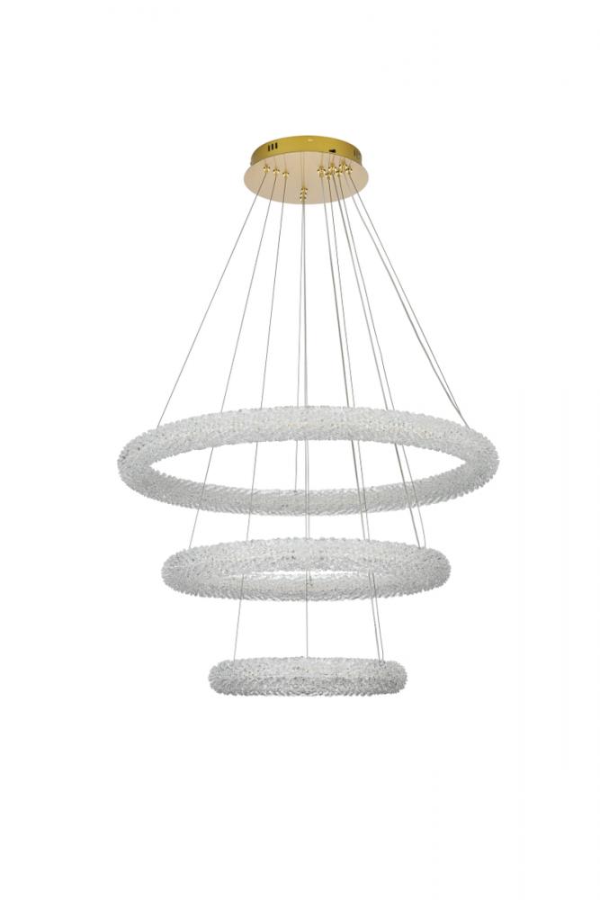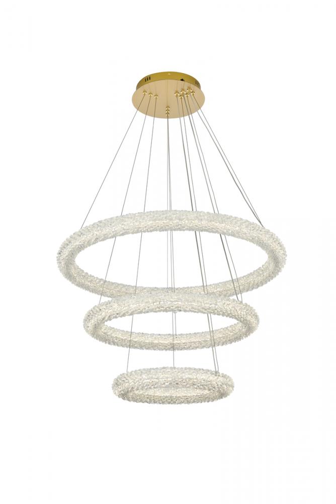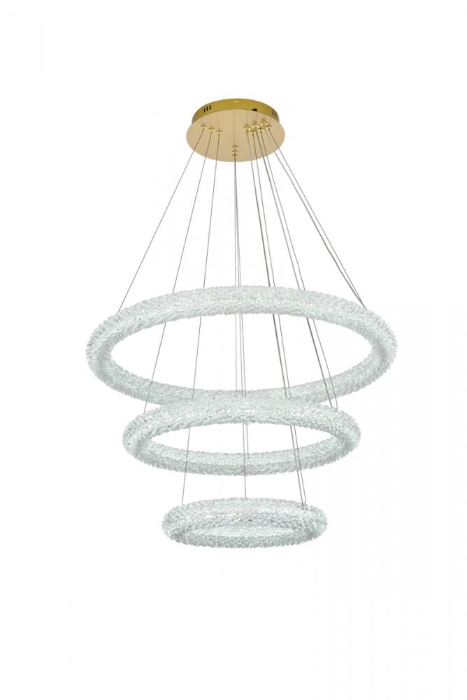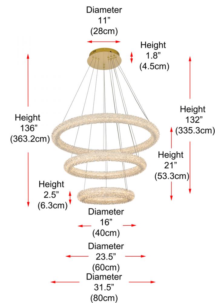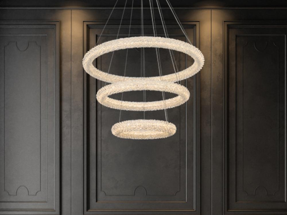 Illuminate your space with this enchanting 32 inch LED three-tier chandelier Chandelier, showcasing two captivating rings adorned with crystals for a touch of sophistication.