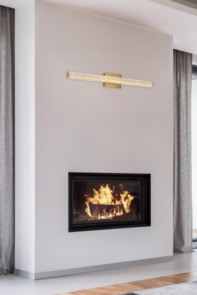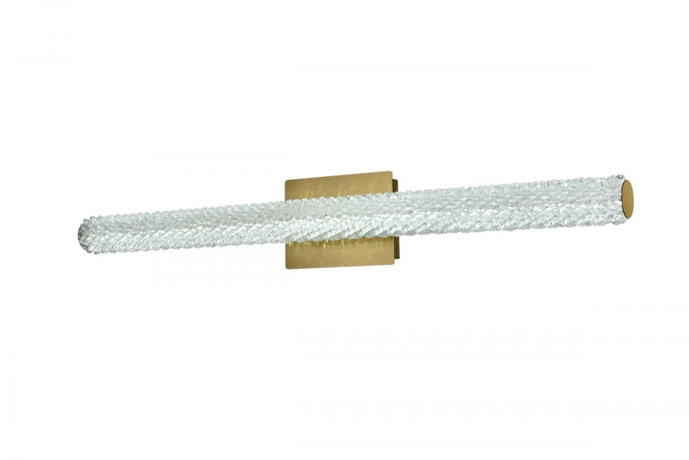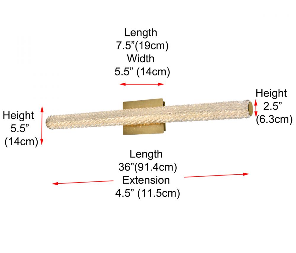 Illuminate your space with this exquisite crystal wall sconce, boasting a sleek and horizontal cylindrical design measuring 36 inches with a 7.5 inch backplate.