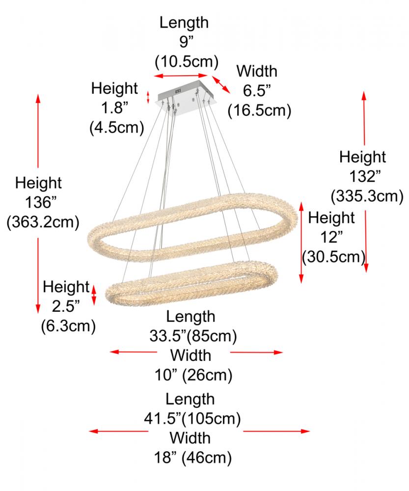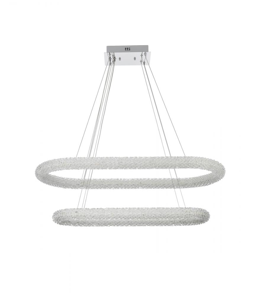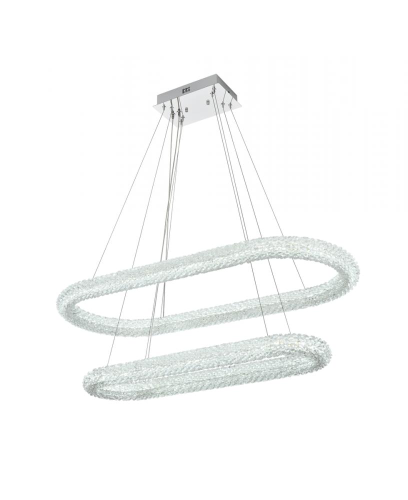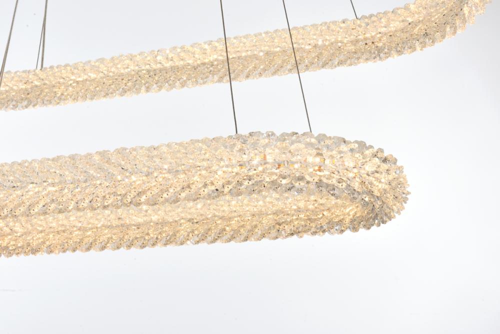 Illuminate your space with this enchanting 42 inch LED Tiered Chandelier, showcasing two captivating oblong rings adorned with crystals, adding a touch of sophistication.