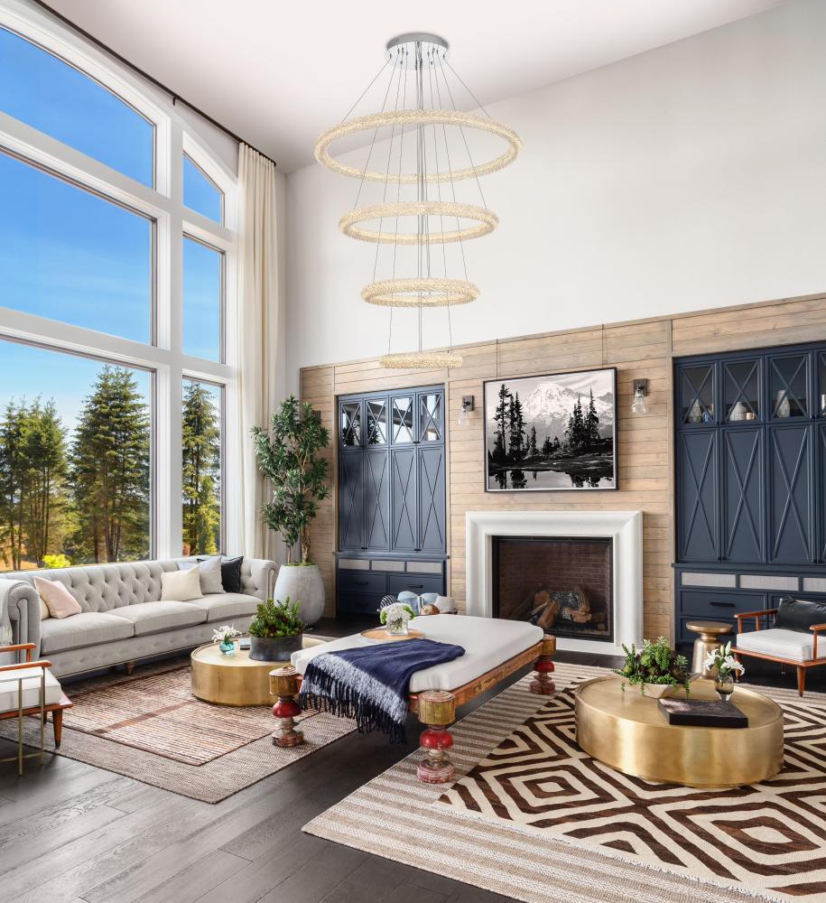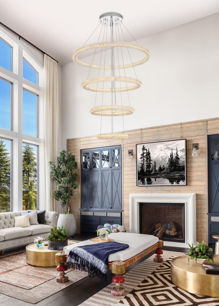 Illuminate your space with this enchanting LED Tiered Chandelier, showcasing two captivating rings adorned with crystals for a touch of sophistication.