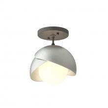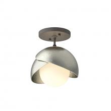 The Brooklyn Double Shade Semi-Flush brings a bit of whimsy to its space. Some see it as "botanical" with cupping leaves, others see it as a bit of a "wink", the Brooklyn lights up its space. With the option of a two-toned finish, with a choice of accent color for one of the forged and textured shades, this ceiling fixture offers functional yet stylish light. Available in all standard finishes.