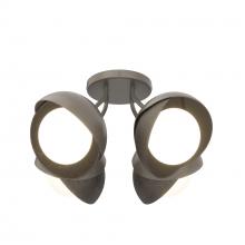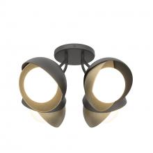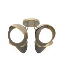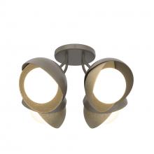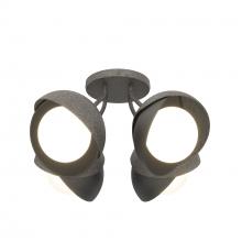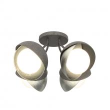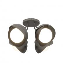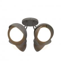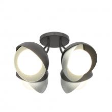 Each of this Brooklyn Double Shade Semi-Flush's four glass globes are shrouded by two hand-forged shades, each hammered from a flat plate of steel. Steel arms are angled out from the canopy, giving a broad range of illumination from a seemingly small cluster of lights. This ceiling fixture is available as a two-tone finish, with forged and textured shades that may be in different colors for dramatic effect. Available in all standard finishes.