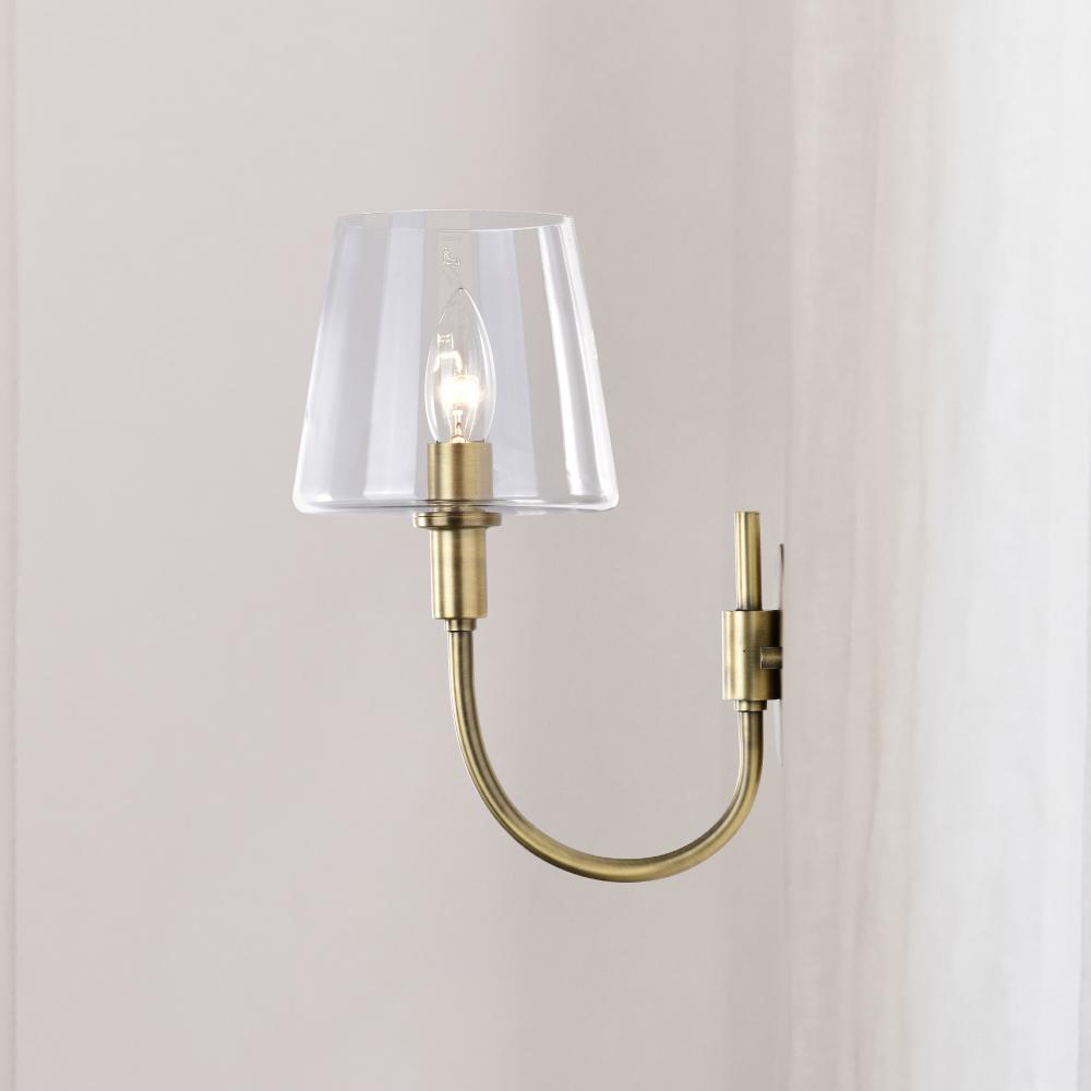 If you're looking to add a touch of classic, elegant lighting to your home, the Brookside Collection fits the bill. A lustrous vintage brass hints at old world charm and accentuates the slender curves and lines of the fixtures. The clear glass shades e