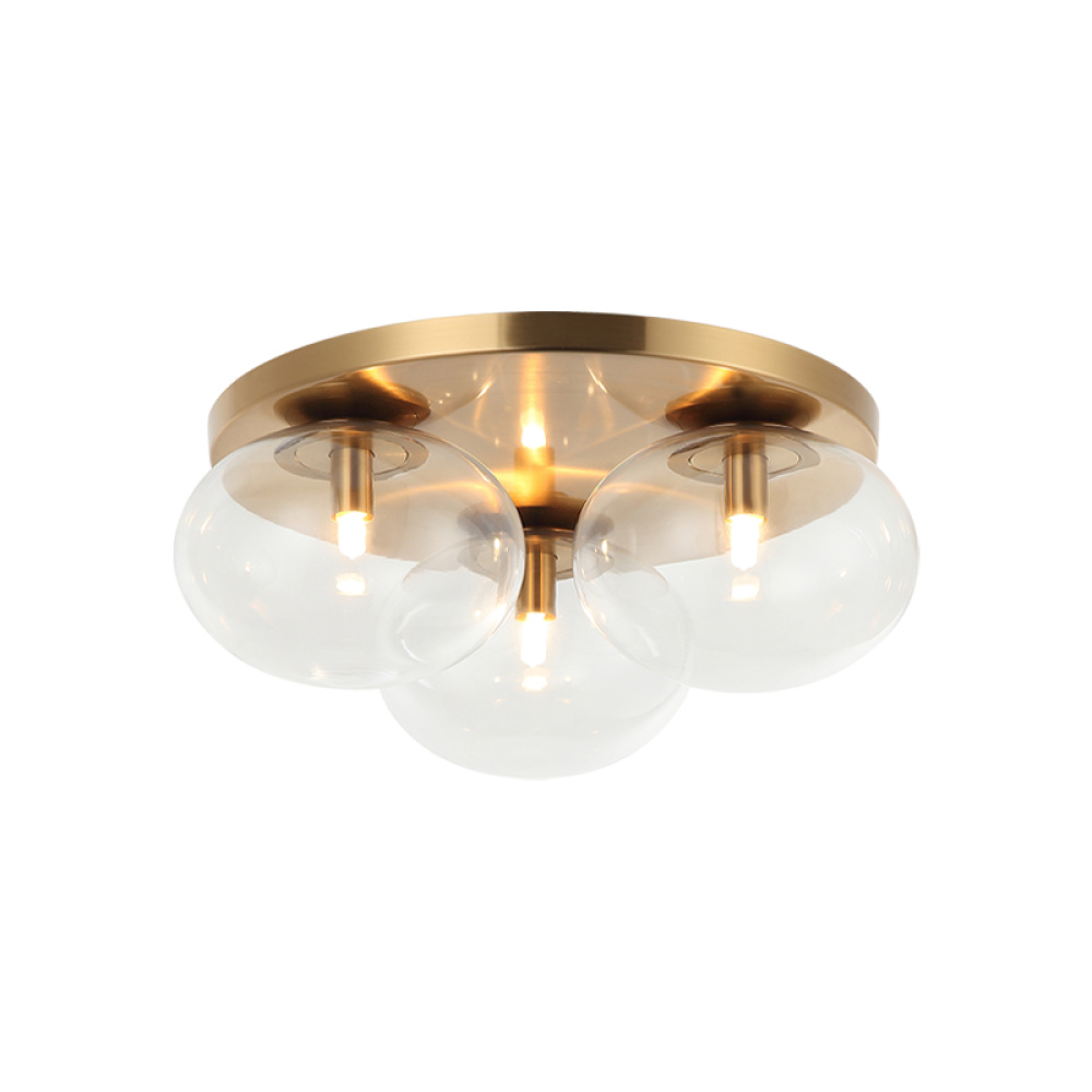 3 LT 16"DIA "BULBUS" AGED GOLD CEILING MOUNT / CLEAR GLASS G9 LED 10W