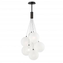 Clusters of glass globes in various sizes and color are suspended from a central point and burst outward. Configurations include a 4-Light, 9-Light, and 12-Light cluster and can be mounted close to the ceiling or included down rods to extend the height. Ch