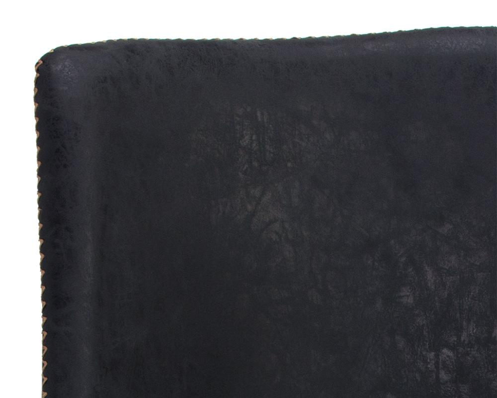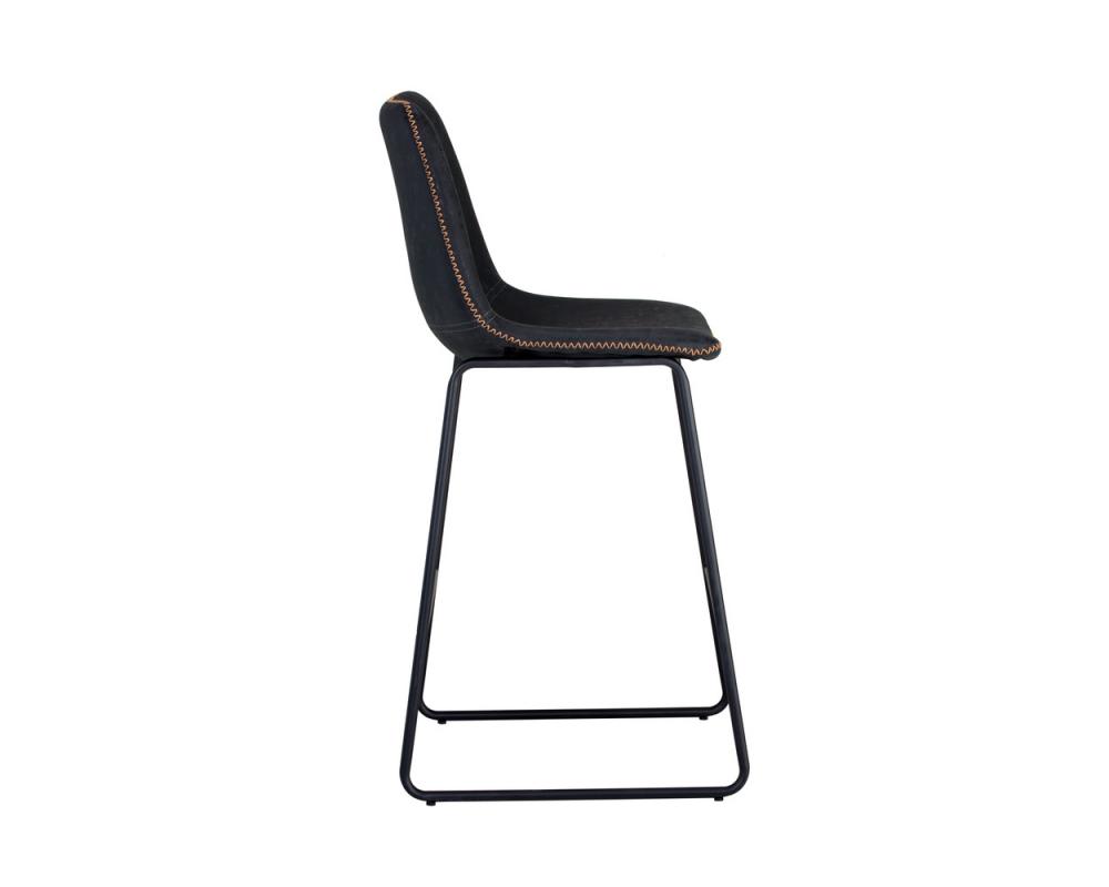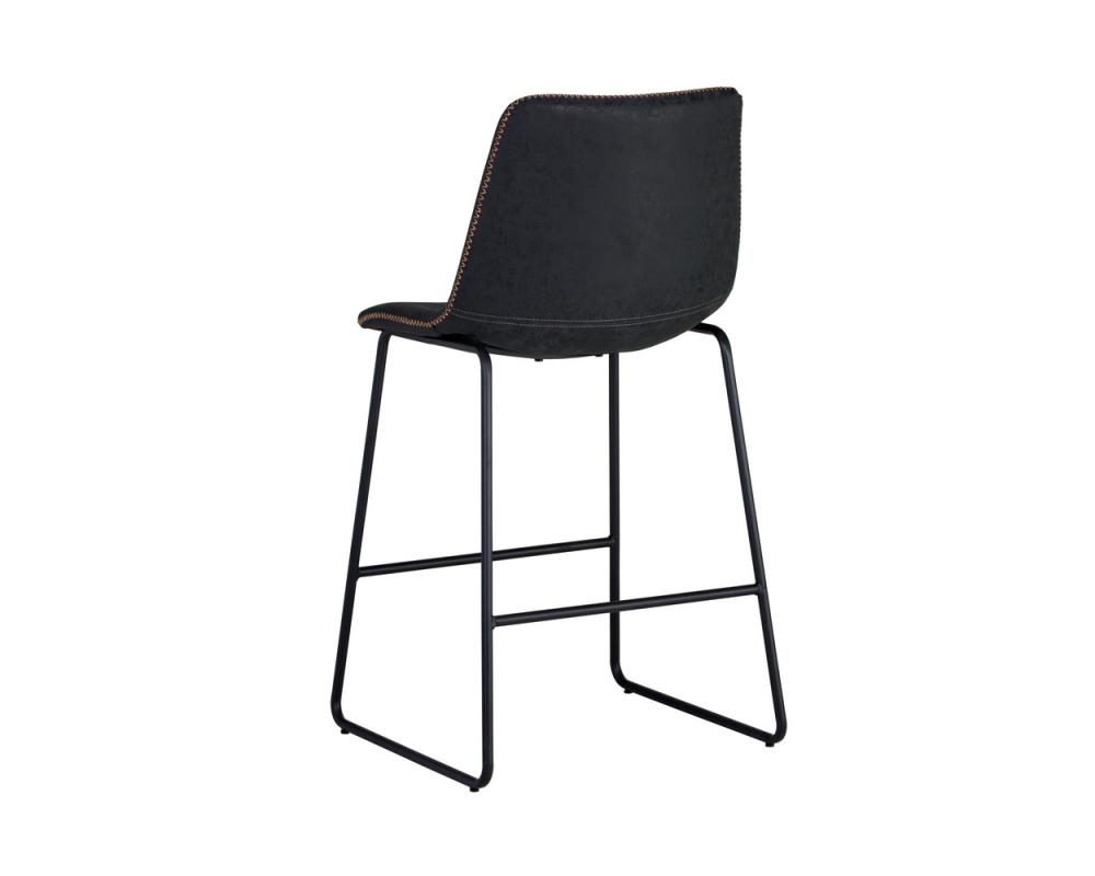 A comfortable and compact counter stool. Features a simple, mid-century silhouette and finished with a brushed black steel frame. In antique black faux leather. Suitable for various dining, kitchen and bar spaces of all sizes. Handle With Care: This design has been crafted with faux leather. Faux leather is manufactured to reflect the natural characteristics of leather; as such, colour variations, markings wrinkles, grooves, and light scratches are appreciated characteristics. No two pieces will be alike.