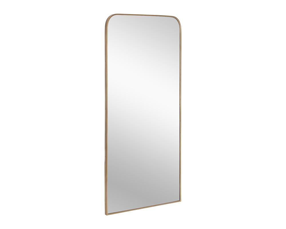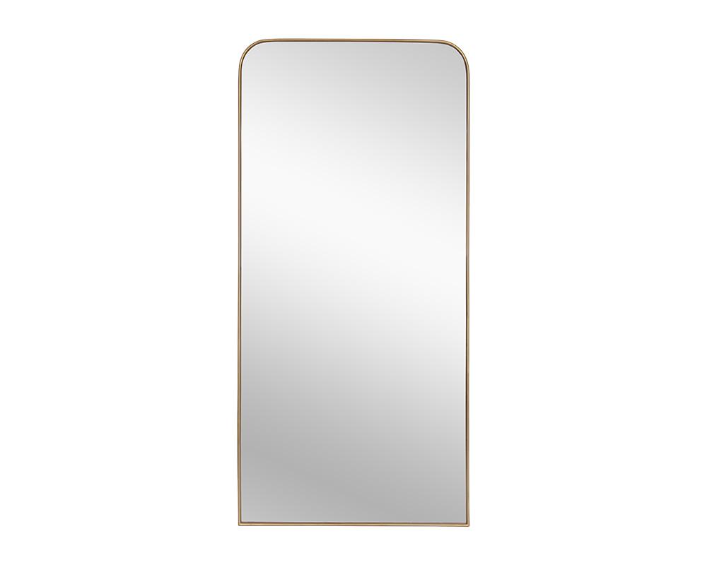 Complete a modern loft with this sleek, minimalist floor mirror. Features a brushed brass iron frame. Anti-tip kit included. Made in India. With refined craftsmanship, this design was brought to life by skilled local artisans. By nature, these materials develop unique imperfections such as fissures, markings and colour variations for a truly one-of-a-kind piece.