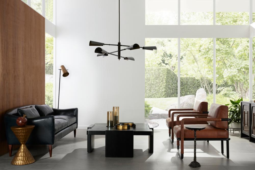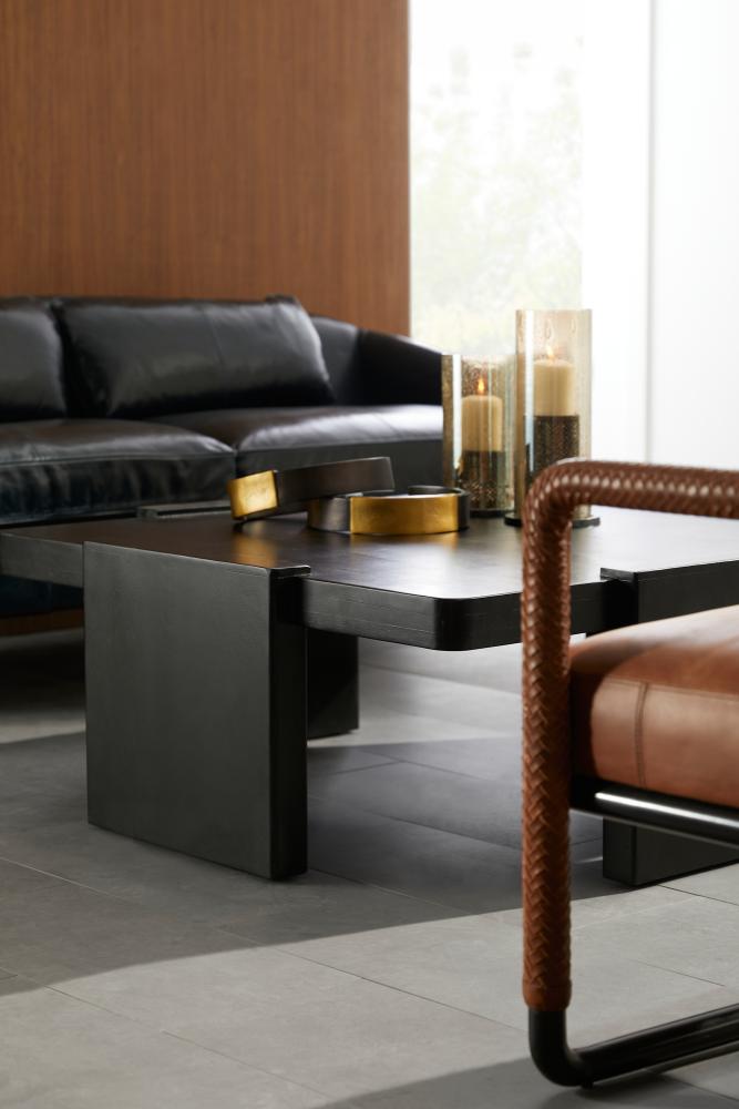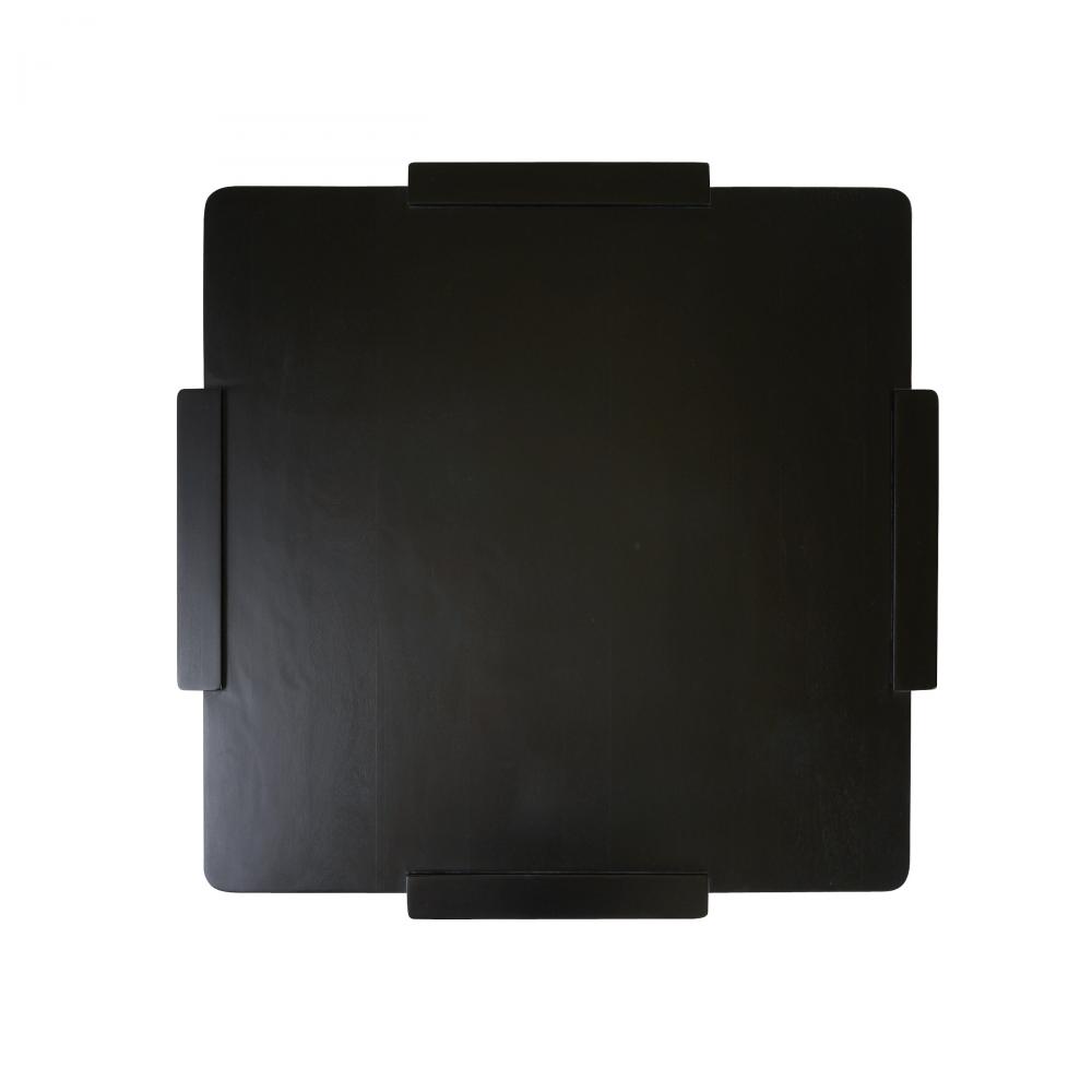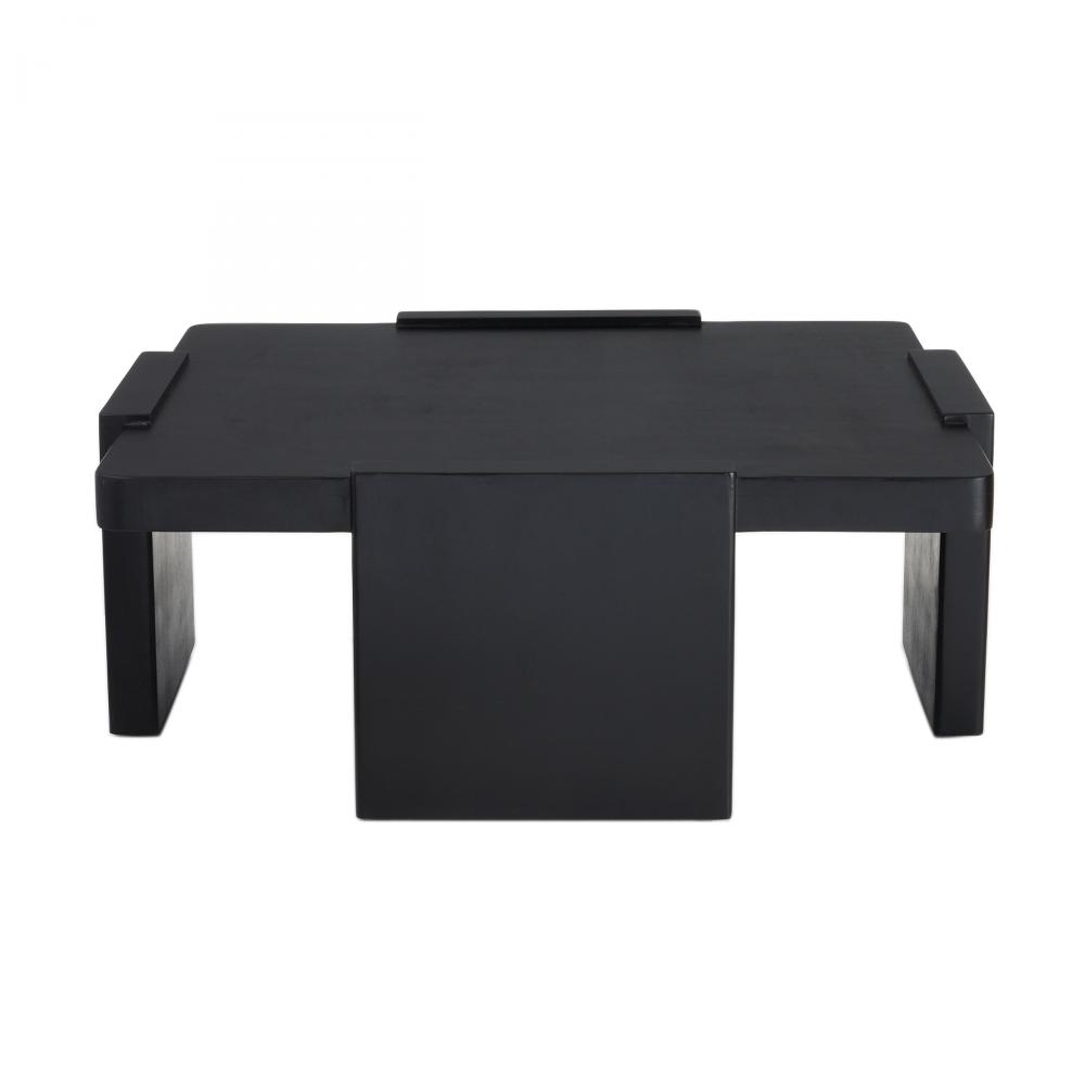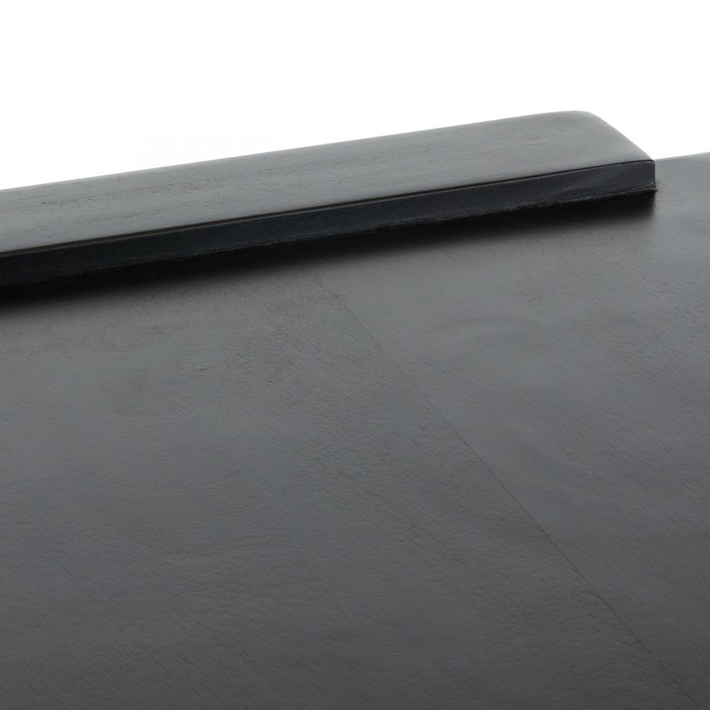 A suspended style of ebony mango wood is greater than the sum of its parts. Passing planes that serve as its support extend above the top slab to reveal an intriguing dimensionality. Rounded at the corners. Finish will vary.