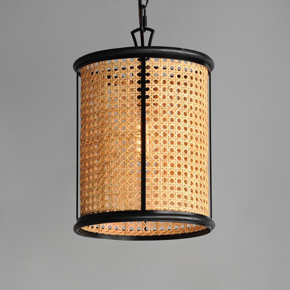 Experimenting with various materials for weaving and their technique, two iterations of a classic drum pendant were made using blackened rattan and cane wicker. The overall effect is nostalgic, coastal, and yet transitional with a variety of design aesthet