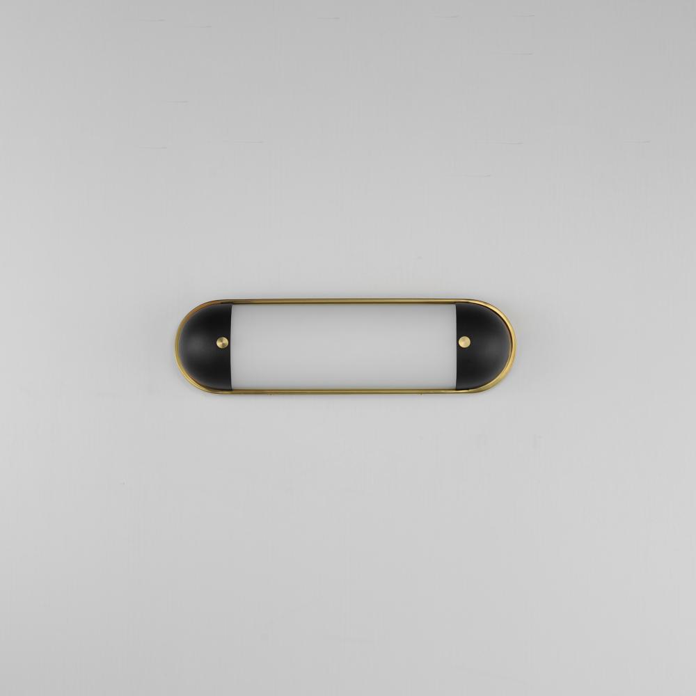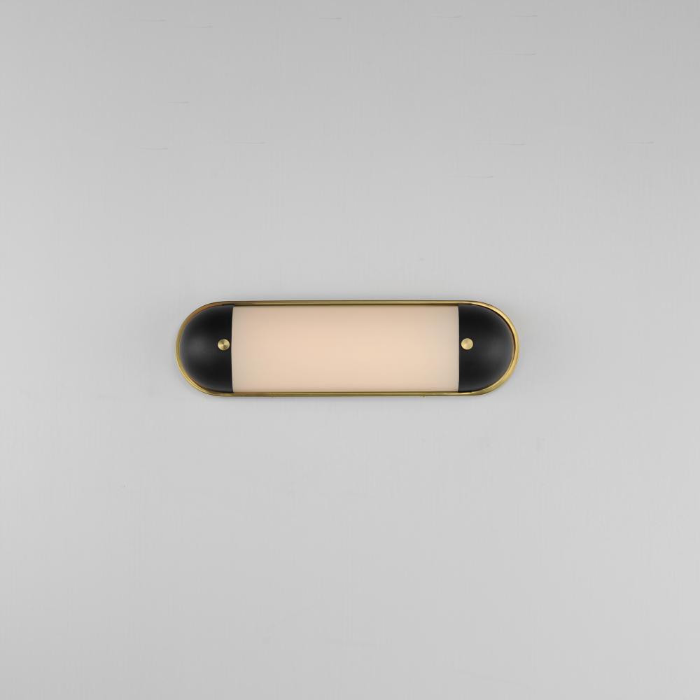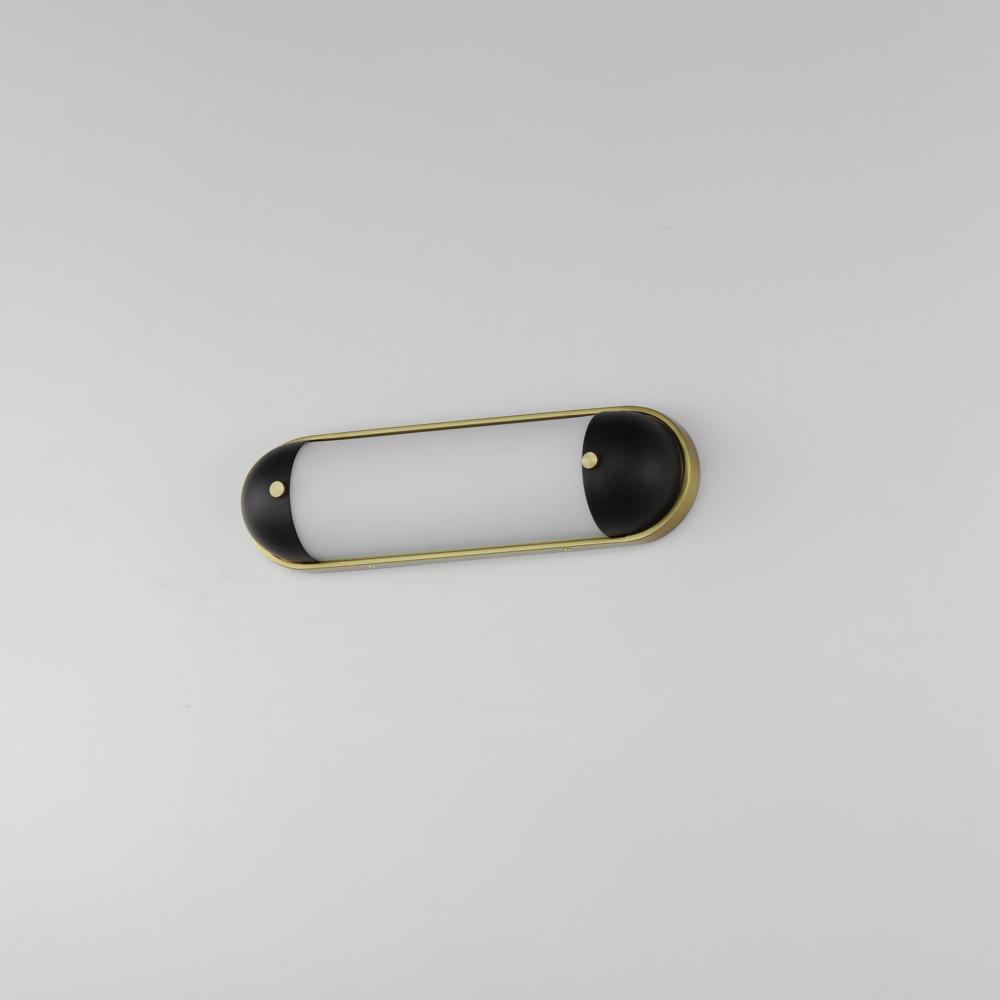A convex curved glass is encapsulated at both ends to create an overall oval form. Available in a bold two-tone Black and Aged Brass finish or Polished Chrome, these wall sconces add sophistication to hallways and above bath vanities. The integrated LED te