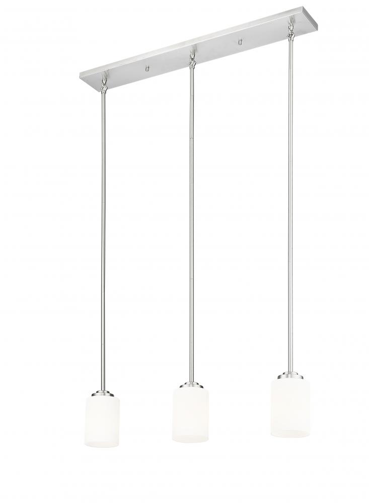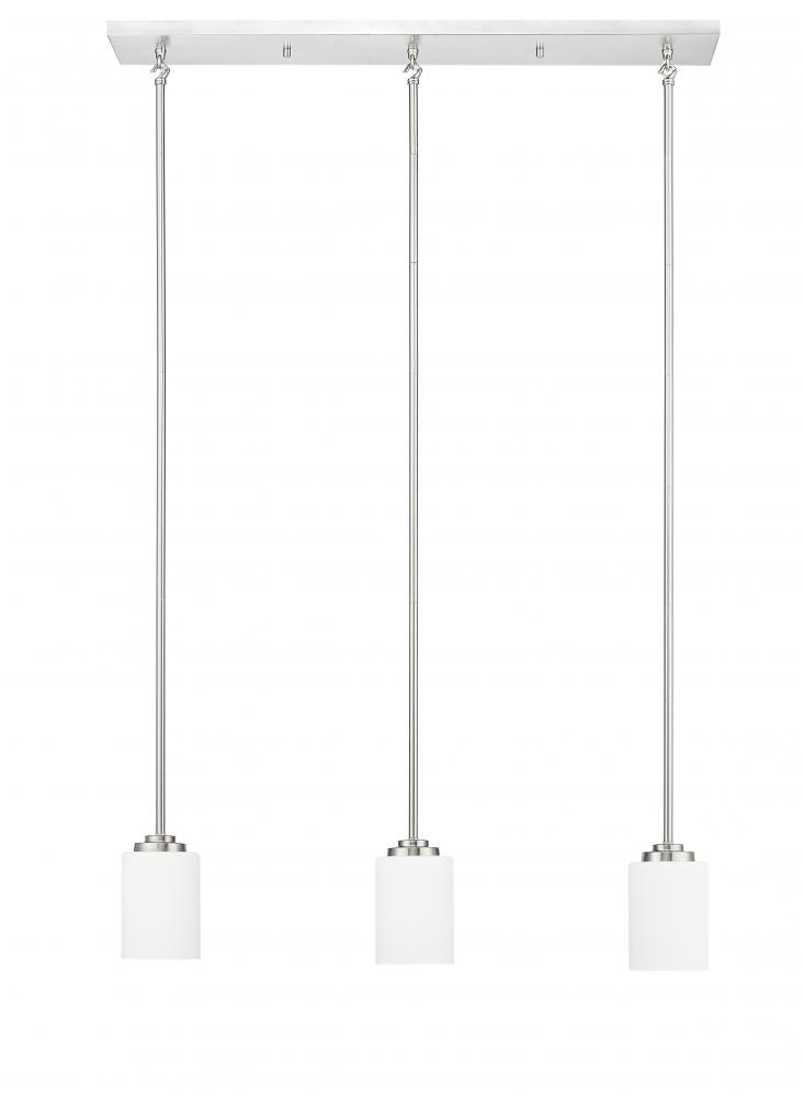 If you're searching for a Sweet 3-light pendant with a graceful vibe, "you'll be inclined"... to reach out for the Caroline! With her radiant brushed nickel finish, simple lines and understated shape, she'll be a charming addition to any space. Good times will never seem so good as when Caroline touches you with her glow.