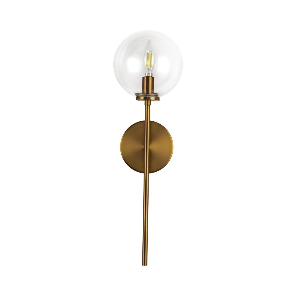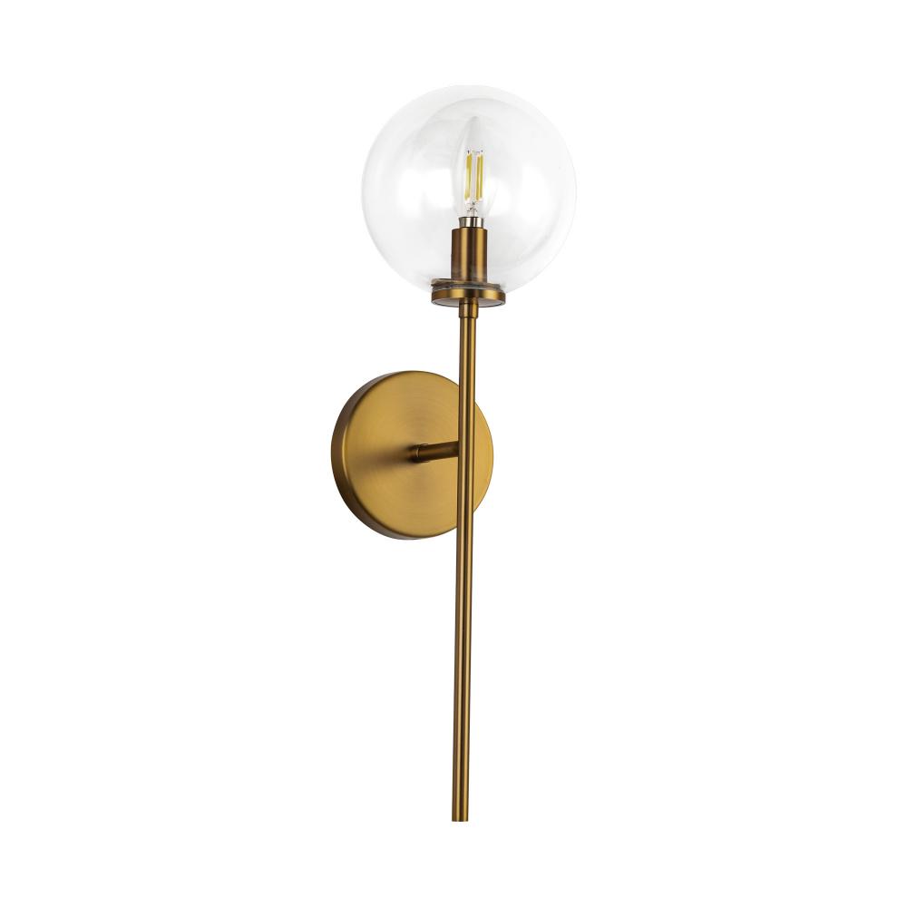 Cassia 1 Head Aged Brass/Clear Glass 1 Light Wall Vanity
