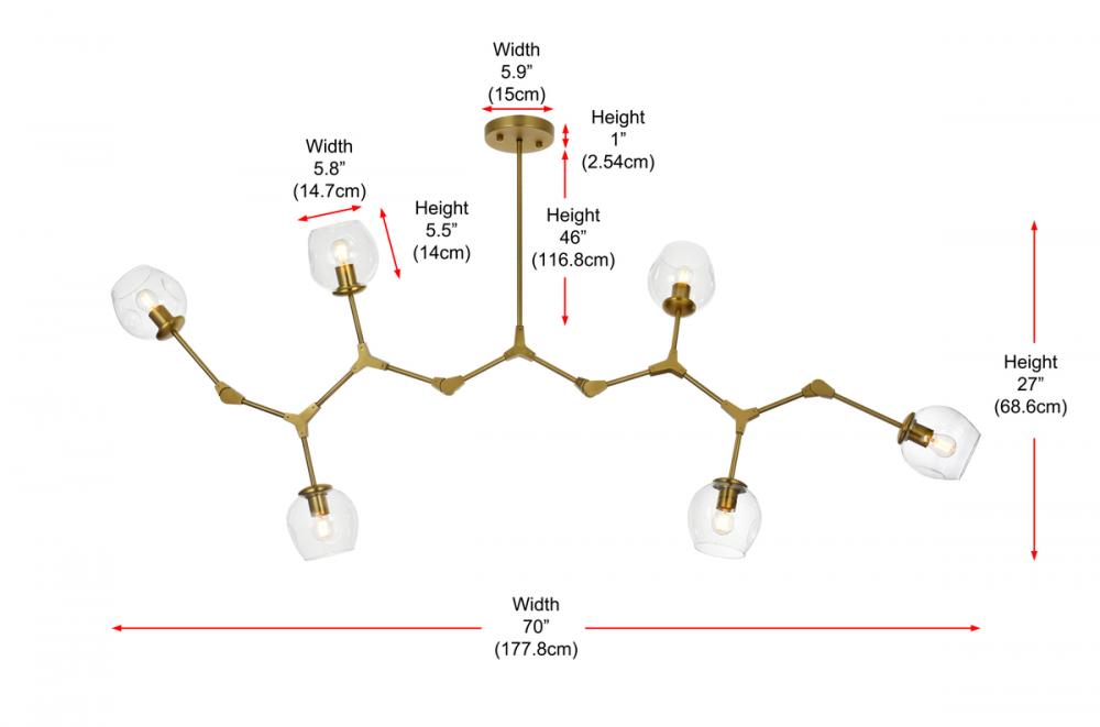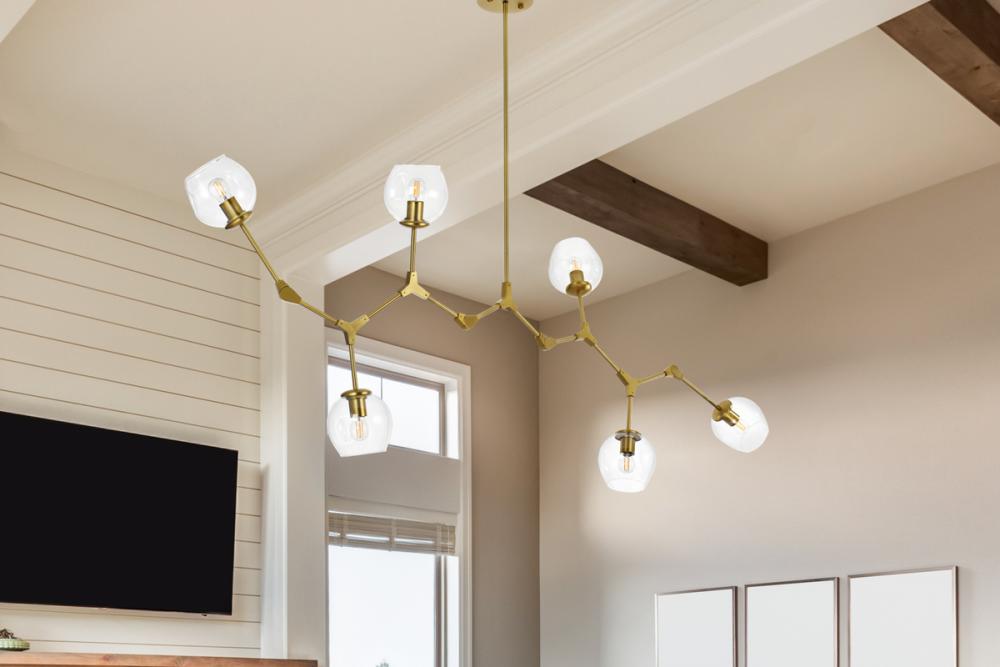 Boasts six lights with clear glass globe shades, offering a stunning visual display. (Bulbs not included)