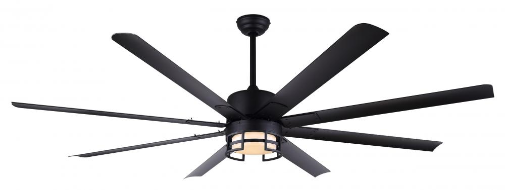72 in. Matte Black Ceiling Fan with 8 Black Aluminum Blades, Integrated LED