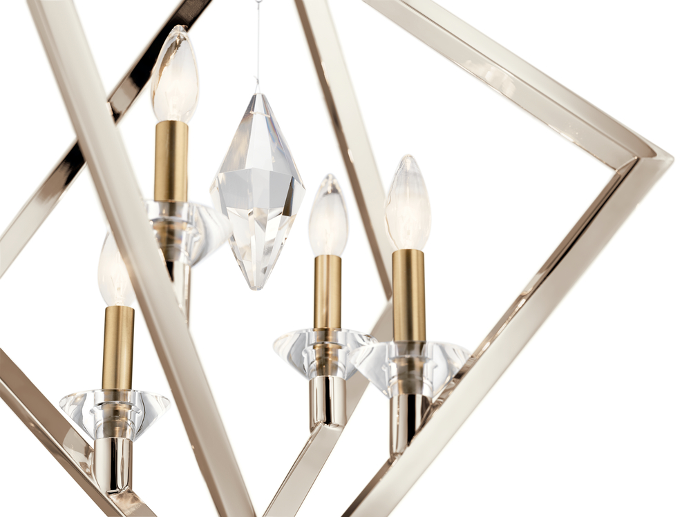 Glamorous in shape and style, the Layan™ 4 light pendant is a gem that lights up a space. The Polished Nickel and Classic Bronze finish combination shine with style, while the decorative crystal pendant sparkles.