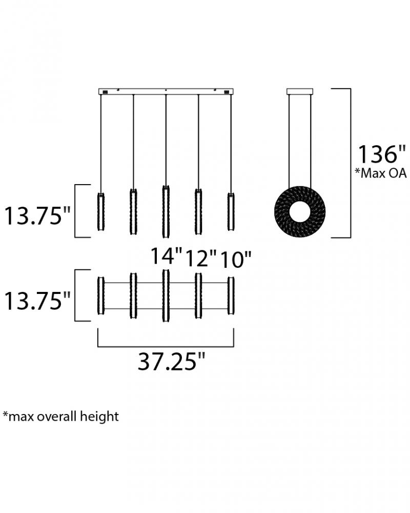 • Bulbs: (5) x 83 Watt PCB Integrated
