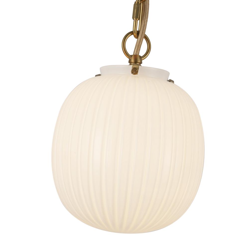 Cherise 7-in Brushed Gold/Glossy Ribbed Opal Glass Socket Pendant