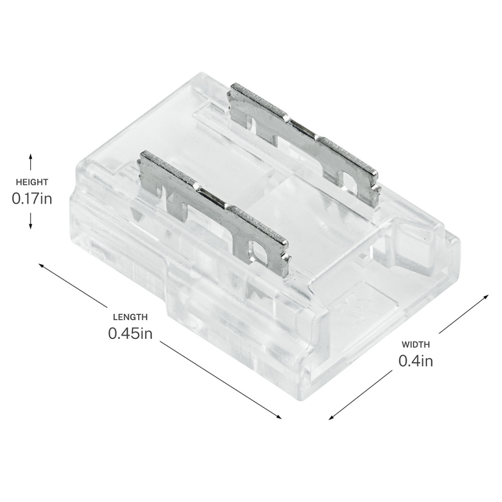 The COB Dry Tape to Wire Terminal Block Connectors is used to create jumpers between two sections of the tape light or to create a custom length power supply lead. It's low-profile and versatile style is perfect for under cabinets, covers and shelves. Ideal for use with the Kichler 6T Series COB Tape Light .