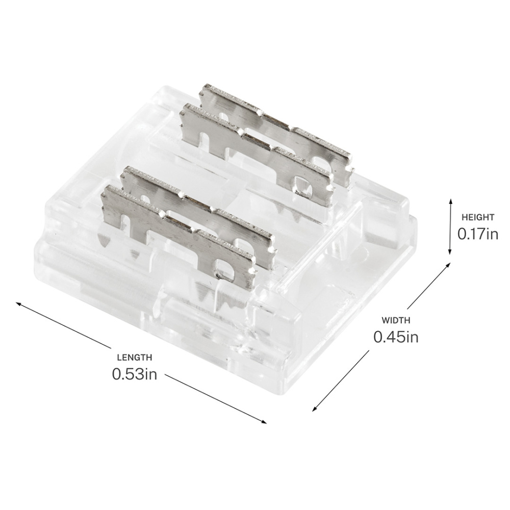 The COB Tunable Tape to Wire Crimp Connectors are used to create jumpers between two sections of the tape light or to create a custom length power supply lead. Low-profile and versatile style is perfect for under cabinets, covers and shelves. Ideal for use with the Kichler 6T Series COB Tunable Tape Light.