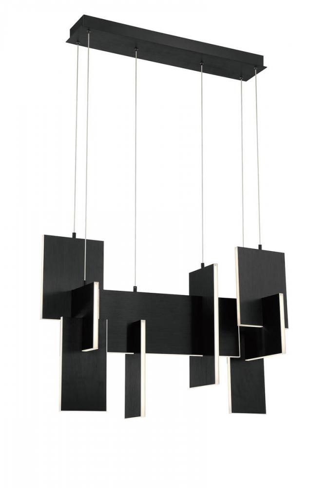 Slim, edge-lit LED panels are creatively positioned to intersect in a dynamic, whimsically modern design featuring anodized aluminum in gold or black